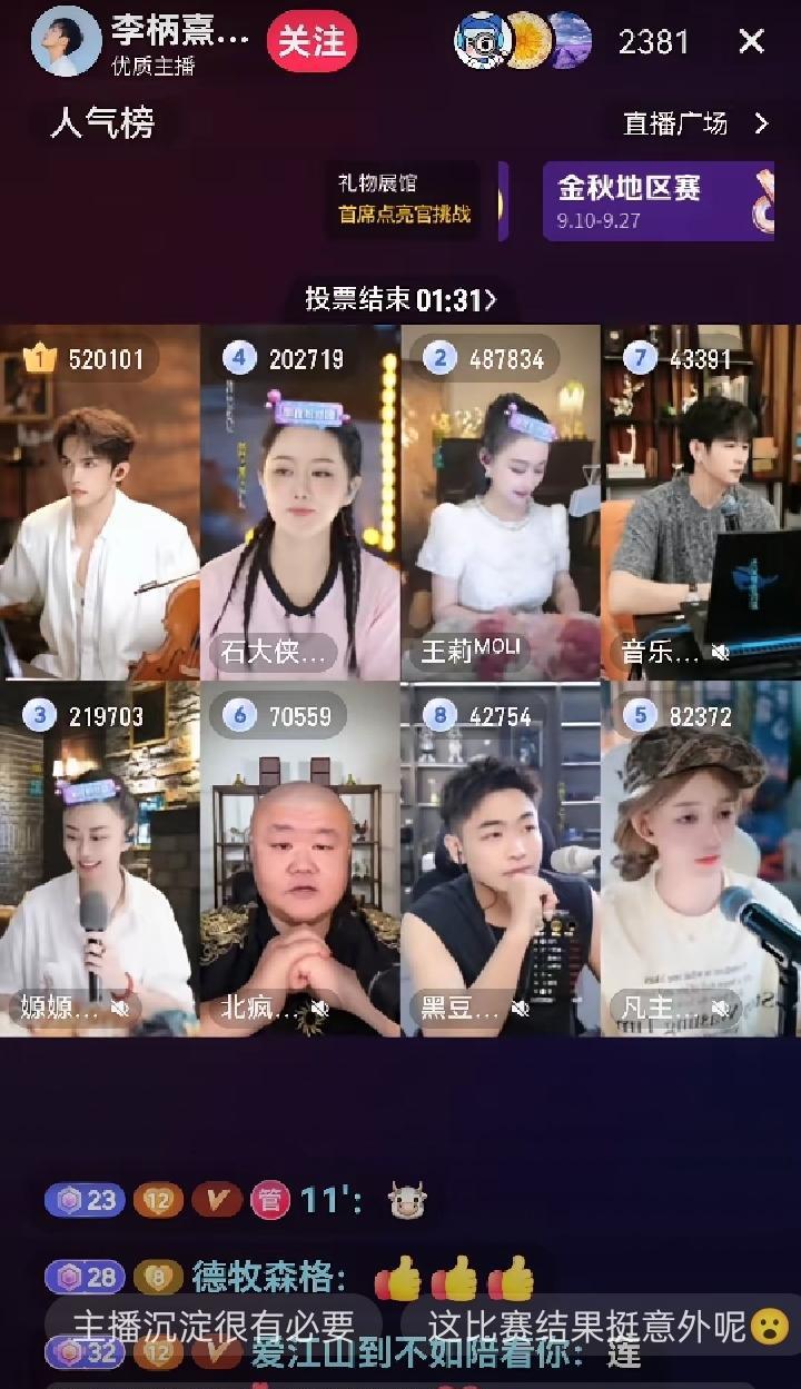 嫄嫄八宫格连麦,认识了这个叫李柄熹的中提琴才艺主播。由于他在直播间高情商地平"嫄嫄啥都想说了算”等节奏,所以收获了一批粉丝。虽然是新手,搞不清加成值等问题,但不影响他会成为一个好主播。去他的直播间,听到他也在唱歌,唱得还不错。他还有一项直播内容,就是与粉丝连线,点评粉丝的演奏。这一点,才艺主播,特别是唱歌类主播可以借鉴。上票的大哥大姐连麦一展歌喉,那是怎样一种体验?