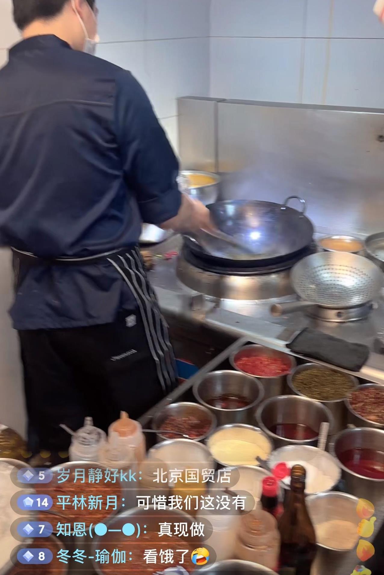 今天张兰的几个店火力全开啊! 每一家都开启了后厨直播!把主播忙的不轻,每次从厨房里出来后都长出一口气:热死我了! 从侧面反映出来,厨师们太不容易了! 麻六记的国贸店,在后厨直播,厨师们炒菜太麻溜了,配菜配料下锅出菜如行云流水啊,在自己的位置上如鱼得水,这大概就是专业厨师的业务能力吧!