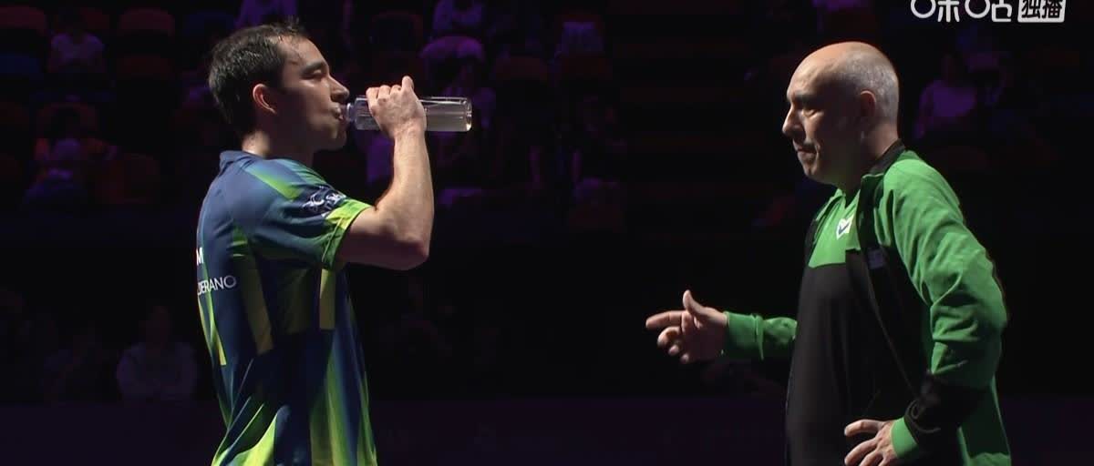 有意思!雨果局间不换体恤了! 今晚,2025WTT澳门冠军赛男单1/4决赛,新科世界杯男单冠军、巴西的雨果·卡尔德拉诺对阵德国的帕特里克·弗朗西斯卡。 第一局,双方打的难解难分。雨果13:11拿下这一局。 有意思的是,以往每次局间休息时雨果都要换体恤,现在也不换了。 是澳门不热吗?还是女朋友高桥·布鲁娜在看呢?