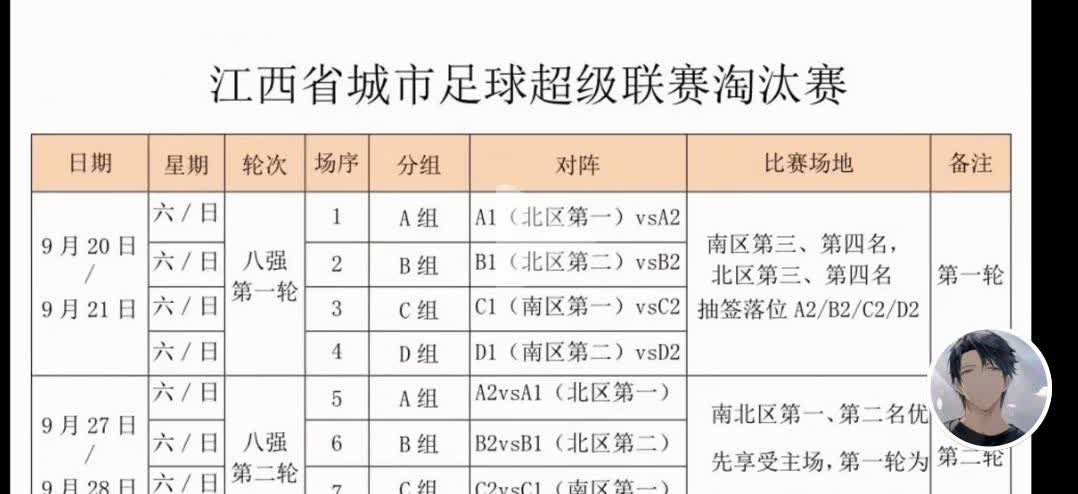分享(赣超淘汰赛)网上搜了一大圈,终于找到赣超淘汰赛的规则了。 淘汰赛第一轮: 九江(主场)VS(新余、抚州抽签),第二轮九江为客场; 上饶(主场)VS(新余、抚州抽签),第二轮上饶为客场; 宜春(主场)VS(南昌、景德镇抽签),第二轮宜春为客场;; 赣州(主场)VS(南昌、景德镇抽签),第二轮赣州为客场。