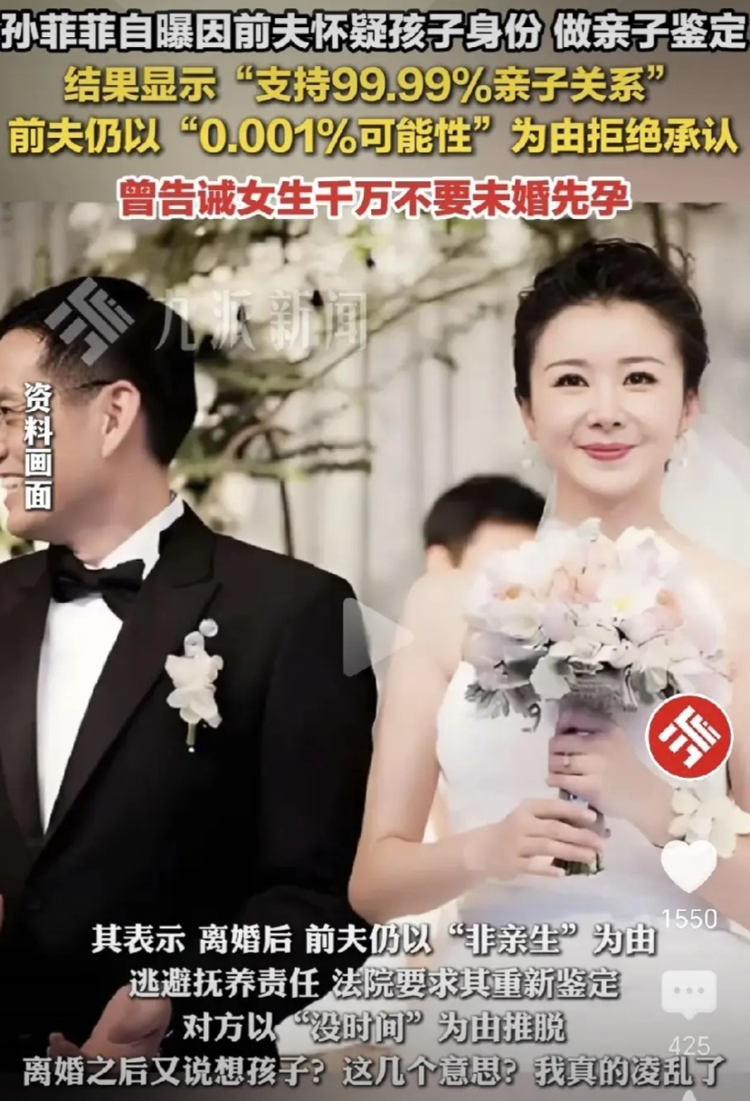 孙菲菲这个前夫,让女人未婚先孕,事后却怀疑孩子的身份,女人为了自证清白,挽救婚姻,主动去做亲子鉴定。鉴定结果:支持99.99%亲子关系。可是这个男人仍以“0.001%可能性”为由,拒绝承认,逃避抚养责任。法院要求他重新鉴定,他却以“没时间”为由推脱。钱对他来说真的那么重要吗?
