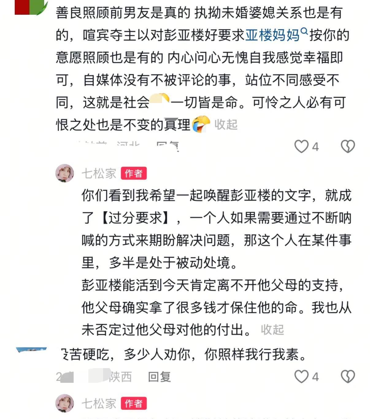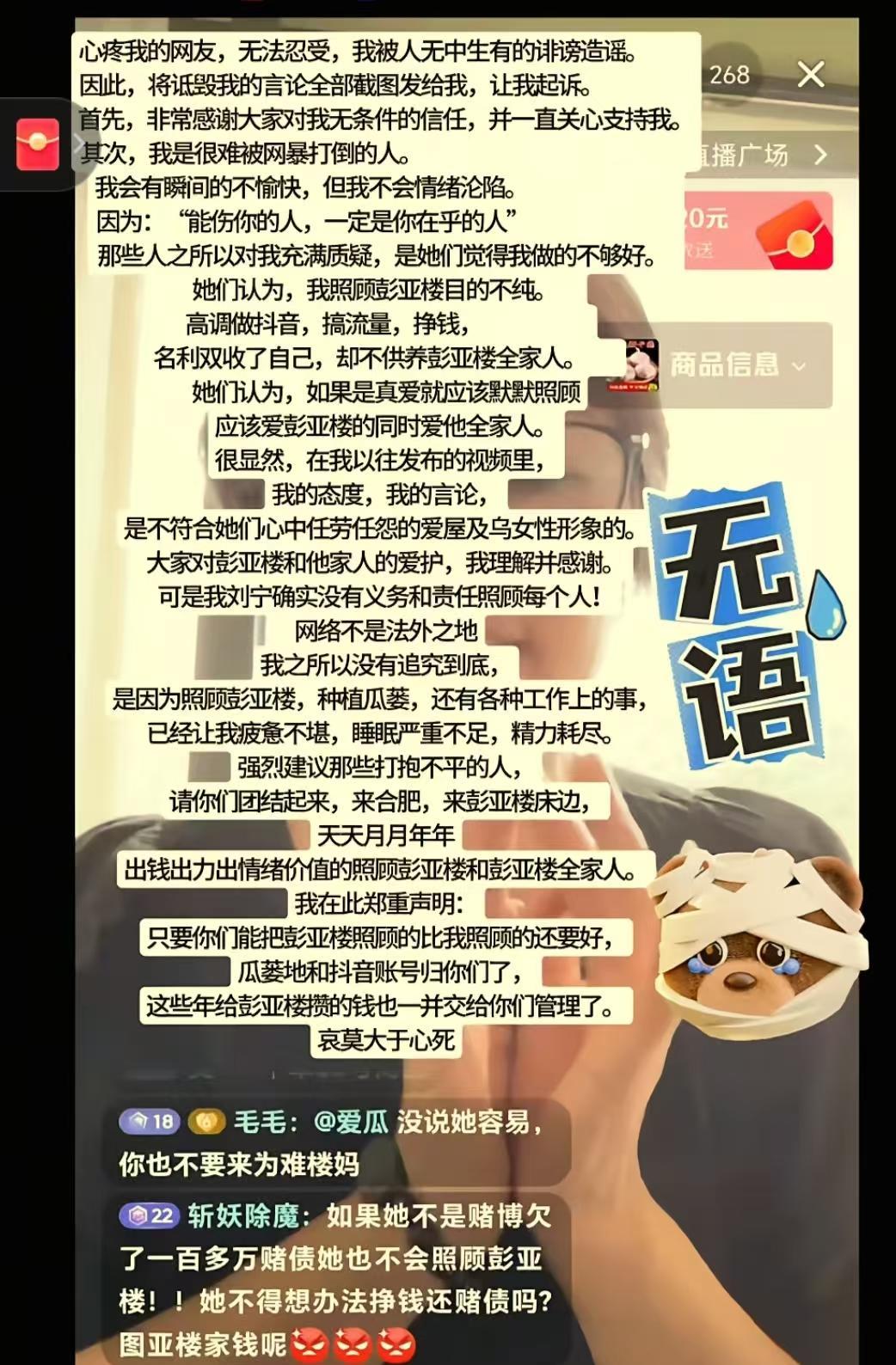 看到刘宁故事我忍了 看到跟男友处了才9个月,就守护他八年,我也忍了 可是看到彭亚楼他妈开直播,有这么多人嚼舌根,我实在忍不住了 说实话,我刷到刘宁故事的时候,愣是在沙发上坐了半小时没动——你想啊,跟男友处了才9个月,正甜的时候,对方突然煤气中毒瘫了,换别人早跑了吧?可她倒好,一守就是8年。照顾人这事儿,跟熬老汤似的,得天天盯着,火大了糊,火小了没味儿,她不光管彭亚楼的吃喝拉撒,还接了人家之前的事业,顺便拍短视频记录康复,你说这精力,换我早崩溃了。本来以为网友都会夸她,结果最近冒出一堆闲话,她倒好,每次被问都笑着说“不后悔”,我姥姥常说“各人有各人的缘法”,意思就是谁都有自己的路,她这路走得是真难,但也真倔。 彭亚楼他妈不是爱直播嘛,有次直播间里有人嚼舌根,说刘宁“图钱”“没安好心”,你猜他妈咋整?全程跟没看见似的,连句“别乱说”都没说。网友把截图发给刘宁的时候,她那心情估计跟吃了凉柿子似的,又凉又涩,郁闷得不行。我之前有个闺蜜,跟男友妈闹过小矛盾,本来就一点破事,结果网友在评论区瞎起哄,愣是把小事闹大,最后俩人分了,你说这网络是不是有时候特添乱?刘宁本来想私下找婆婆聊聊,结果婆婆那边没动静,她后来跟朋友说“当时真的想撂挑子,但看着彭亚楼那样,又不忍心”,唉,这人啊,心一软就没辙 刘宁后来发了个视频,没说话,就打了行字:“没计划结婚生子”。好家伙,评论区直接炸了!有人夸她“活得明白”,有人骂她“自私”“耽误彭亚楼”,我晕,这不是胡扯吗?她照顾人8年,把事业打理得井井有条,还天天帮彭亚楼做康复,够给力了吧?我之前跟我妈聊这事儿,我妈说“结婚生子又不是人生必答题”,可不是嘛!就像有人爱吃甜,有人爱吃咸,她不想走寻常路咋了?还有人说“她拍视频是消费彭亚楼”,我真的假的?人家记录康复,既能让大家看到希望,还能赚点钱补贴家用,这不是挺好的吗? 本来我也觉得彭母做得不对,直到我想起我妈的事儿——我妈去年学直播卖土特产,有次有人在评论区骂她“东西是假的”,我妈当场就慌了,手都抖了,半天说不出一句话,最后还是我帮她回的。你想啊,中老年人玩不转直播,面对那些难听的话,可能比咱们年轻人还慌,生怕说错话越描越黑。彭母说不定当时就是懵了,不是故意装哑巴。还有网友说“刘宁是自我感动”,我倒觉得,不管是爱还是啥,她能坚持8年,就比那些只会敲键盘的人强。我姥姥还说“种善因得善果”,她现在把彭亚楼照顾得越来越好,自己也有了店铺,这不就是好结果吗?