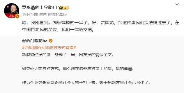 西贝老总贾国龙道歉截图里说,顾客虐我千百遍, 到底是谁先虐谁?是顾客?还是西贝?顾客还是花了钱受虐。 做饭等不就是围着吃饭的转吗? 做餐饮不就应该是这样吗? 客人有疑问,提意见应该虚心听取,作出解释。 有问题就改正这难道不对吗? 难道名人就不是消费者? 就不能对菜品提出质疑,反馈意见了? 贾国龙的道歉根本看不出有哪怕有一丝歉意, 甚至认为顾客是在“虐他”, 罗永浩作为消费者有骂的权利,即使他骂的很冲动, 西贝要做的不是怼回去,而是好好解释、整改, 因为西贝面对的不是罗永浩一个人,而是对高价预制菜反感的消费群体。#西贝餐饮# #贾国龙# #罗永浩#