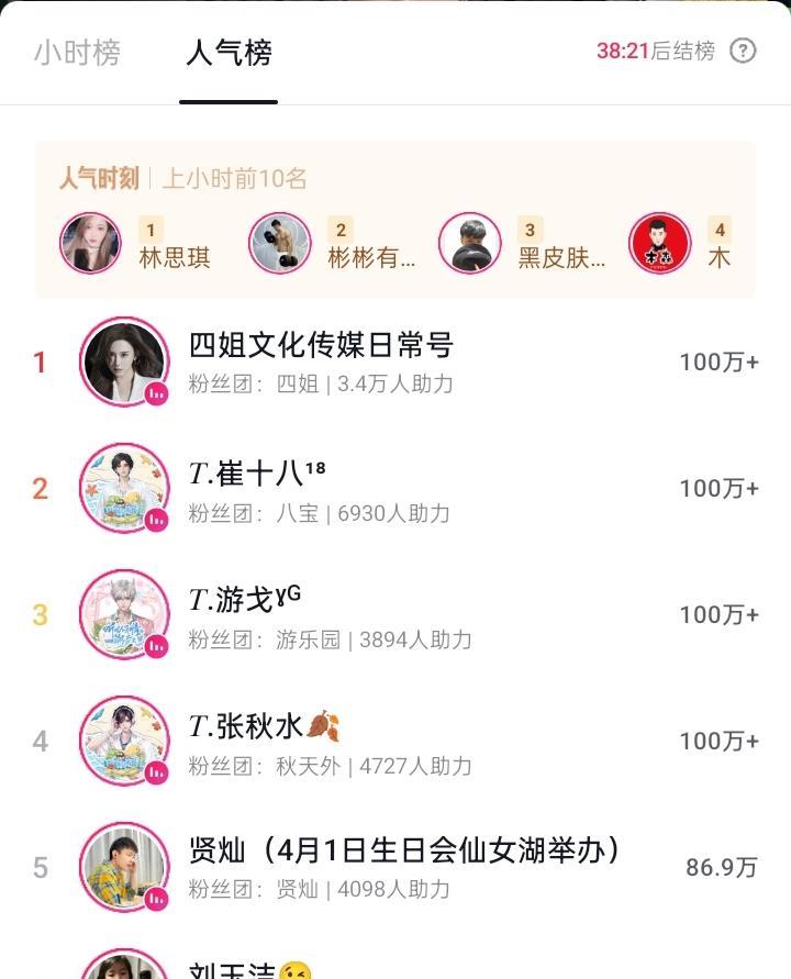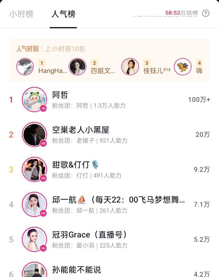 四姐隔天开播,没有选择接着争夺晚八点双榜,而是晚九点开播,鳌战该小时段双榜。所以晚八点时段人气榜林思琪轻松获得。四姐开播后没有像以往一样在直播间专注打榜,而是选择外战PK。结果是总榜第一,人气榜第二。适逢周日,而平时长年占据该时段榜一的旭旭宝宝没有开播,第一被另外一个叫hanghang的游戏主播获得。而这个主播家粉丝还是很给力,下一个时段依然长时间霸占榜一,让平时这个档的人气榜钉子户阿哲直呼压力大。这样看来,由于四姐这条美人鱼,搅动了整个晚间档人气榜这池清水,然后又有hanghang的加持,晚间各时段的打榜争夺越来越玄妙,越来越有看点。