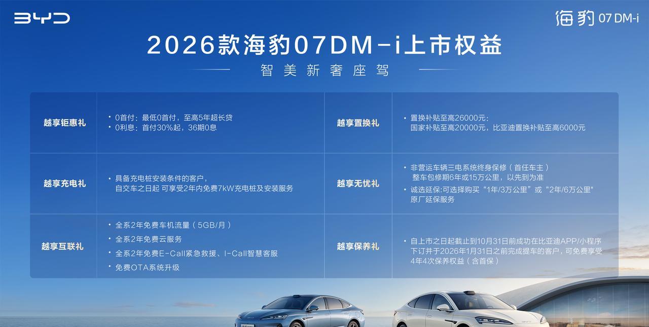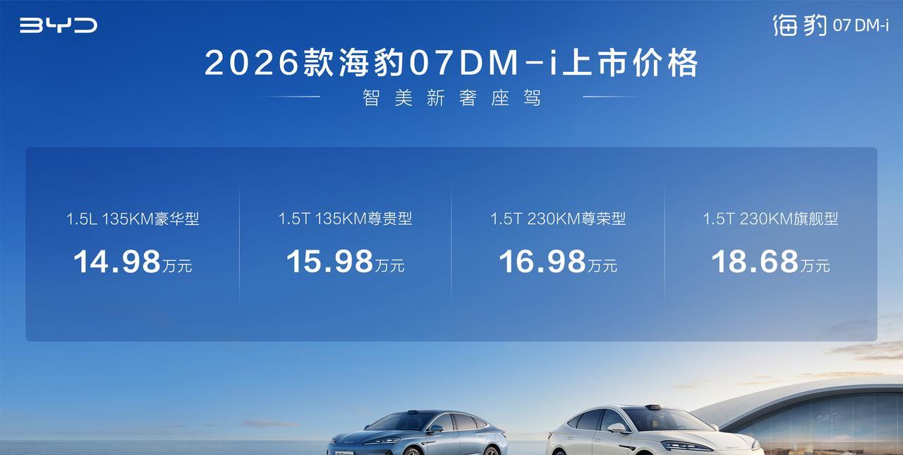 【中国混动车,从大油箱小电池,到小油箱大电池!】 现在的混动车,纯电续航里程没有200公里以上都不好意思出来打招呼了!2026款海豹07DM-i上市,14.98万到18.68万。除了入门车型之外,都搭载1.5T发动机,除了低配两款车型外,都是230公里纯电续航。从今年下半年开始,谁家的插电混动车型,没有200公里,甚至300公里的续航,都不好意思打招呼了。另外一个例子是风云A9L,全系都是260公里纯电续航。【来自懂车帝车友圈】