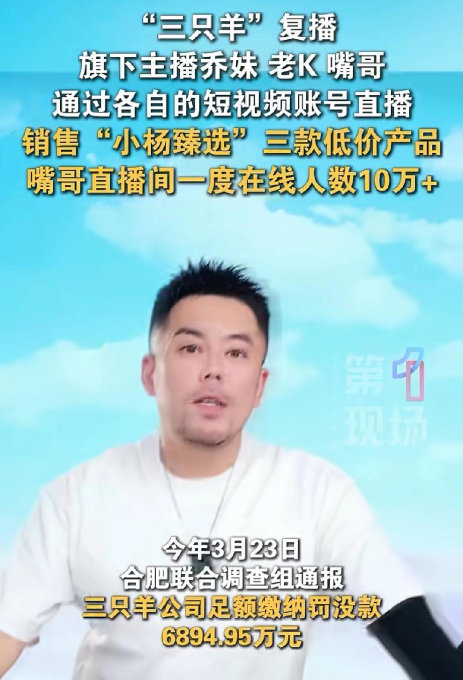 合肥三只羊复播,经过近期热点事件,大家更清醒,更明白了 深圳广播电视台第一现场报道,9月15号晚上9点,总部在安徽合肥的三只羊复播,旗下主播乔妹,老k,嘴哥等人各自直播,10点左右就都下播了,其中嘴哥直播间人数超10万人。 三只羊复播,网络争议没有以前大了,因为经历了近期罗永浩的热点事件,网友们更清醒,更明白了,以前对于网红直播出现假货深恶痛绝,觉得实体店可信,但是实体店被披露出来各种问题,充满了各种迷幻,大家在愤怒之后,心情反而平静了。 食品安全不是处罚一两个网红或者实体店就能从根本上解决的,需要从法治上立法严管,全民监督。 否则封杀几个网红,或者处罚几个门店,后面还有其他的网红和门店出现,可谓是“野火烧不尽,春风吹又生”,治标不治本。#三只羊直播带货# #三只羊直播争议# #三只羊直播网络# #三只羊停播# #三只羊全线停播# #三只羊网络停播#
