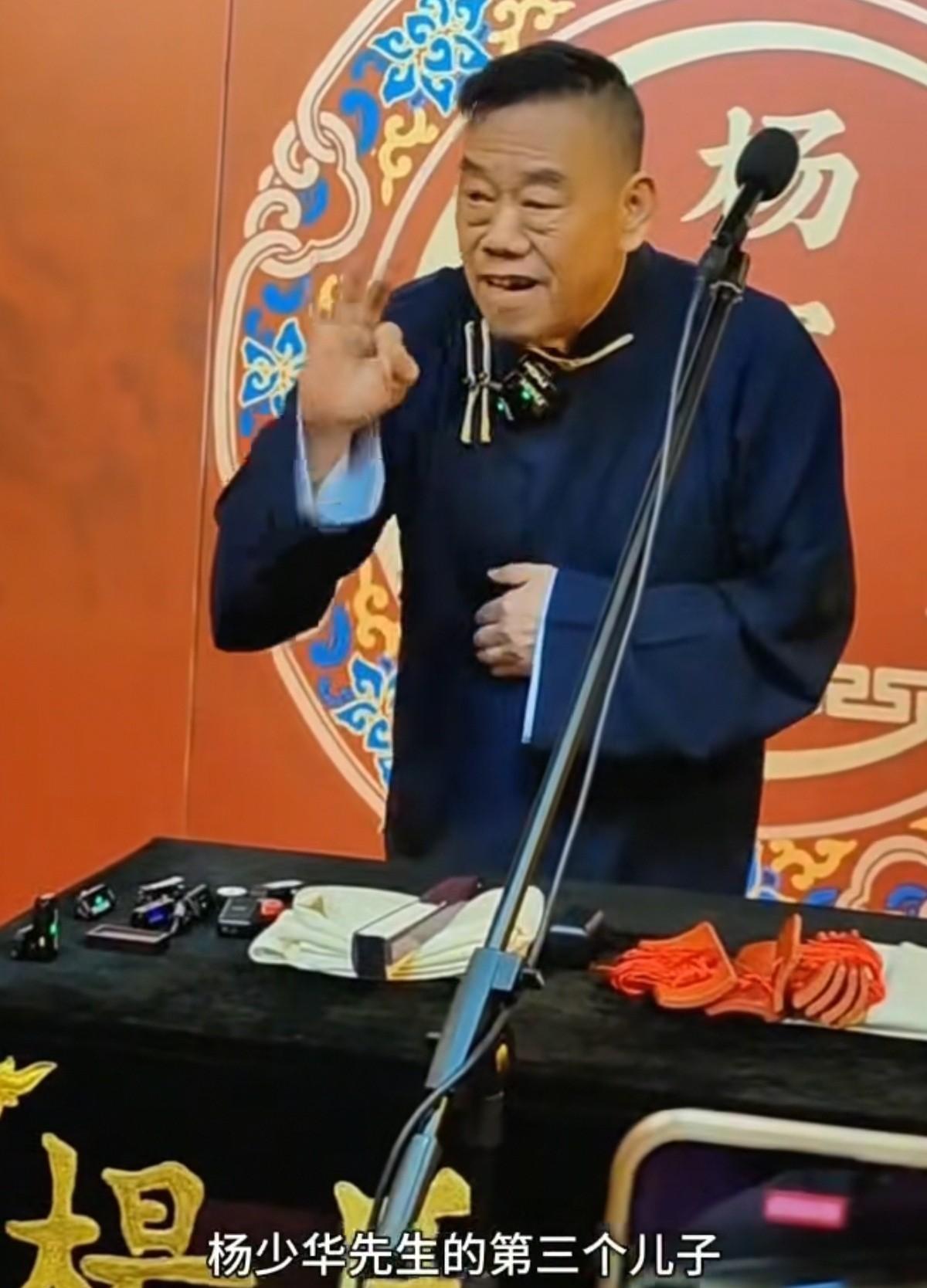 #秋日生活打卡季#杨伦,为杨家班站台:我是杨少华先生的第三个儿子。 相声名家杨少华先生,一共有4个儿子:杨威、杨伦、杨健、杨议。 只有老大杨威和老五杨议,子承父业,说了相声。 刚刚刷到一条视频,杨伦也穿上大褂,到园子里为杨家班站台: “现在隆重地我介绍我自己,我叫杨伦,杨少华先生的第三个儿子。” 杨伦是一个厨师,杨少华先生晚年,一直由杨伦夫妇照顾,两口子非常孝顺,把老爷子照顾得无微不至。 杨家班和杨光相声社,是两家园子。杨家班,是杨少华先生的长子长孙杨化然开办的。 杨光相声社则是一个河北老板开办的,杨议只是在里面说相声的演员。据杨议透露,他和老板有经济纠纷,要在里面白说三年相声。 前两年,杨伦、杨议哥俩,和老大杨威之间有点矛盾。 不过,令人欣慰的是,在今年五一,哥几个已经握手言和重归于好了(图三)。 杨伦,能够去给杨威、杨化然的杨家班站台,说明杨家兄弟还是非常团结的。