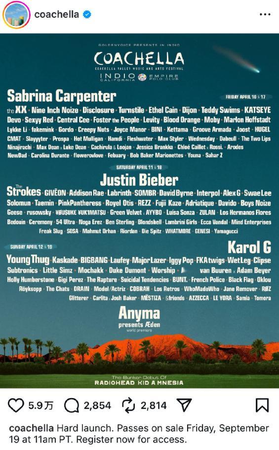 BIGBANG 官宣即将登陆科切拉,科切拉随后也官宣 BIGBANG 的参与,双方官宣相互呼应,让合作动态更易引发讨论。科切拉官宣BIGBANGBIGBANG官宣科切拉