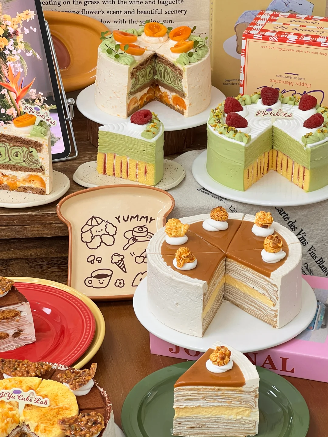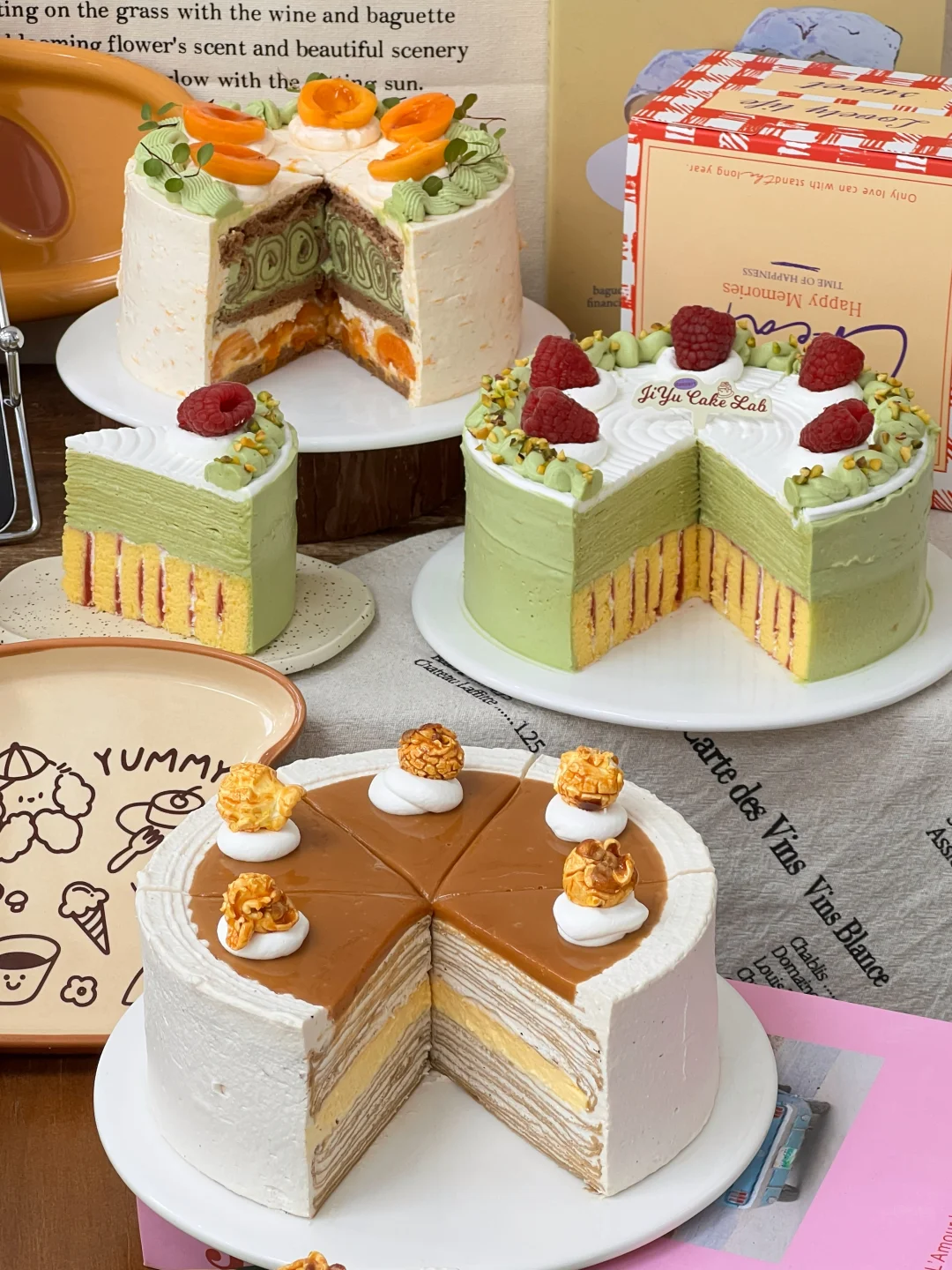 每一款口味搭配不同的装饰风格❣️ 提拉米苏千层蛋糕 伯爵茶太妃千层蛋糕 开心果千层蛋糕 巧克力杏杏子开心果可丽卷蛋糕