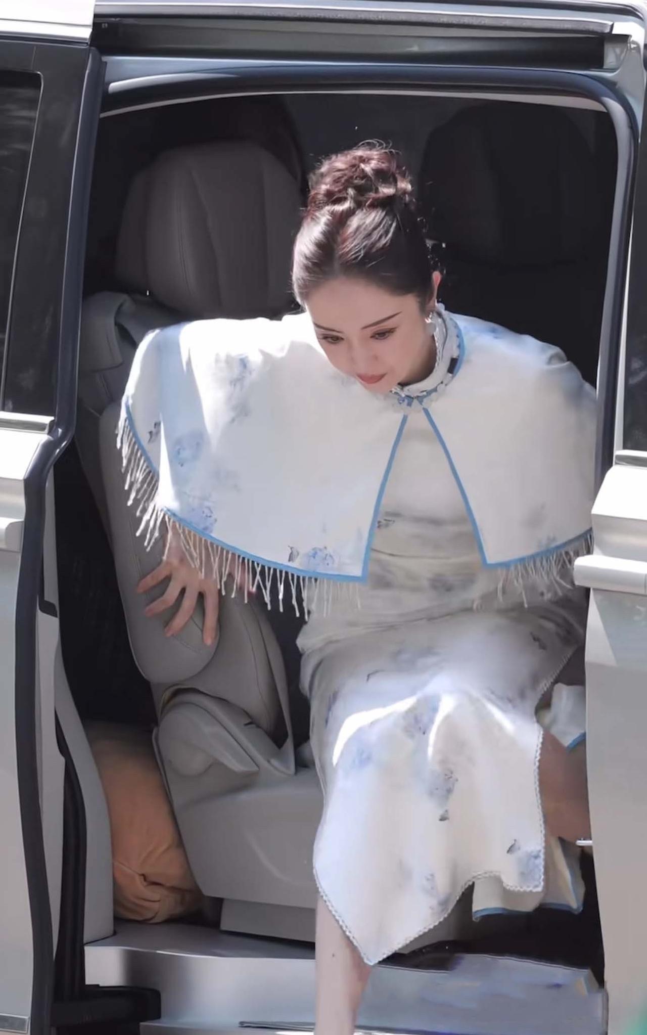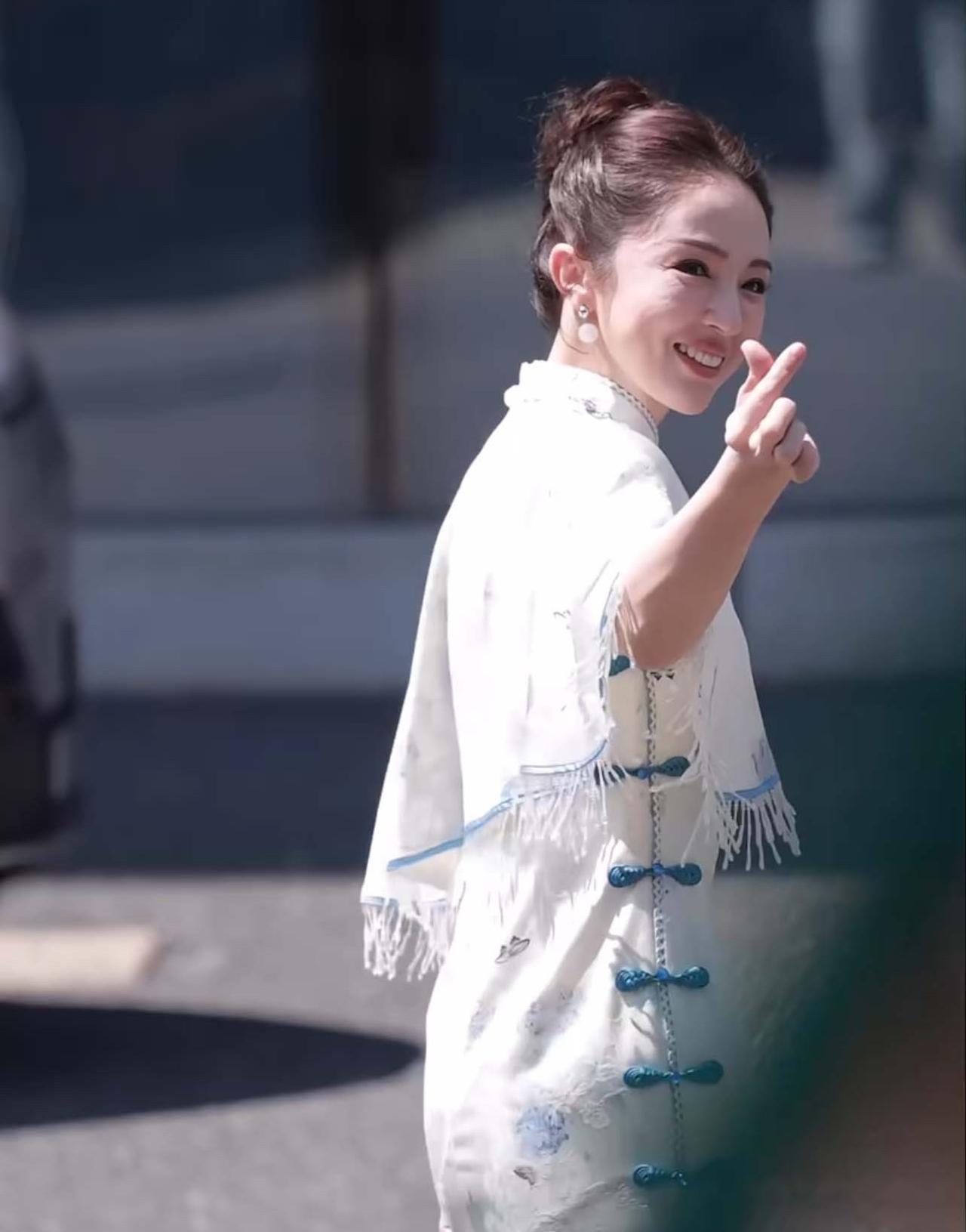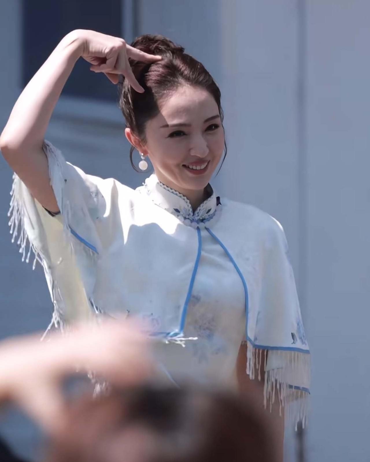 董璇穿青花瓷旗袍太惊艳了! 小酒窝不在身边,董璇穿青花瓷旗袍上班,这身旗袍非常衬