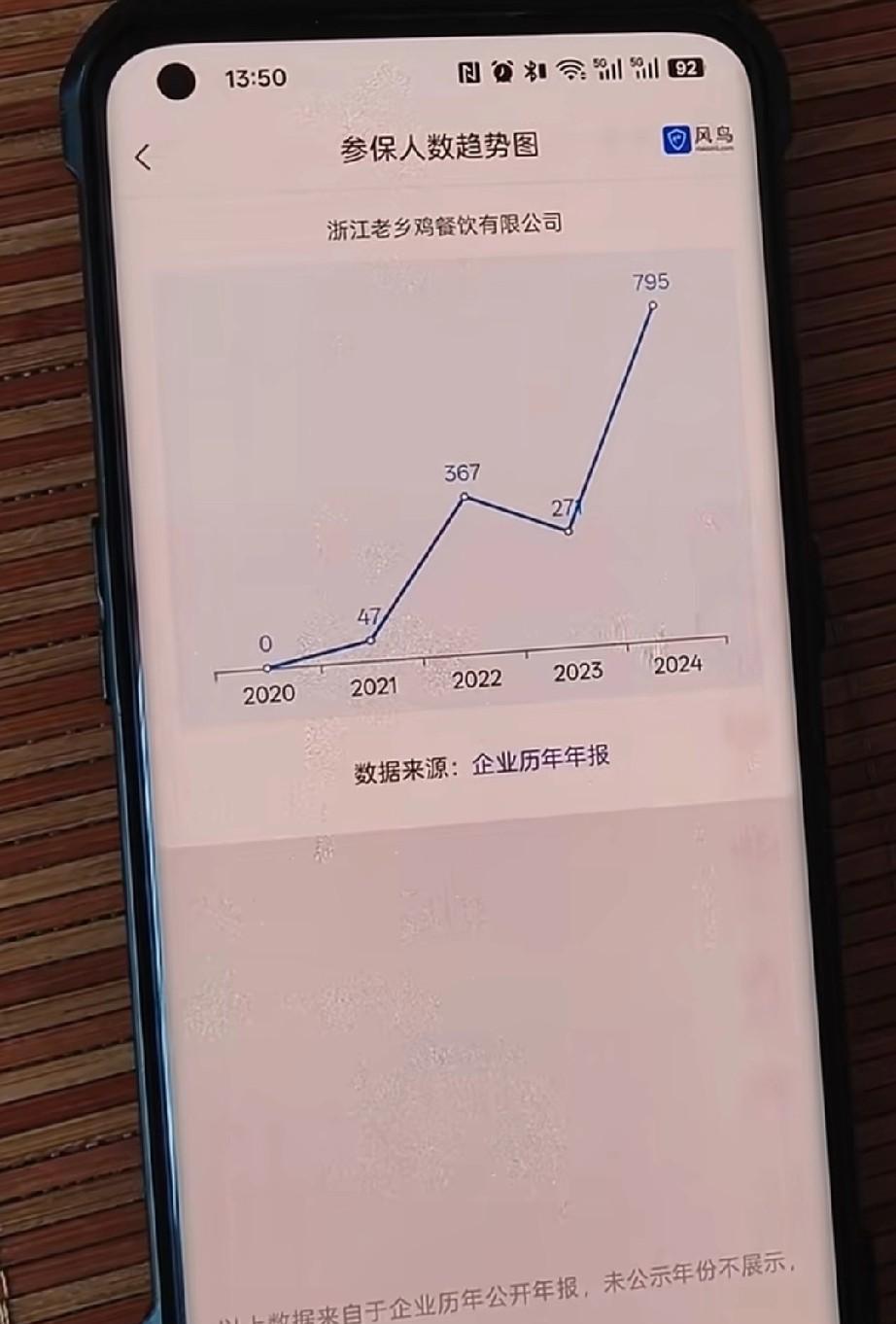 合肥老乡鸡在安徽,浙江,上海,北京的员工全年参保人数 一个地址是在江苏网友,通过专门网站,查询了合肥老乡鸡历年在安徽,浙江,上海,北京的员工参保人数。 根据这个网友的查询得知,2024年全年: 安徽老乡鸡公司参保人数9020人 上海老乡鸡公司参保人数1906人 浙江老乡鸡公司参保人数795人 北京老乡鸡公司参保人数481人 最近这段时间老乡鸡冲上热搜,网友们各种扒老乡鸡的资料,目前来看,老乡鸡还是合规合法,各地分公司开业时候就给员工上社保了,遵纪守法,没有出现什么问题,这家总部位于安徽合肥的餐饮公司,在同行业内做的挺好的[赞] 特别声明,数据图片来自于网络#老乡鸡# #肥西老乡鸡# #老乡鸡广告# #老乡经济#