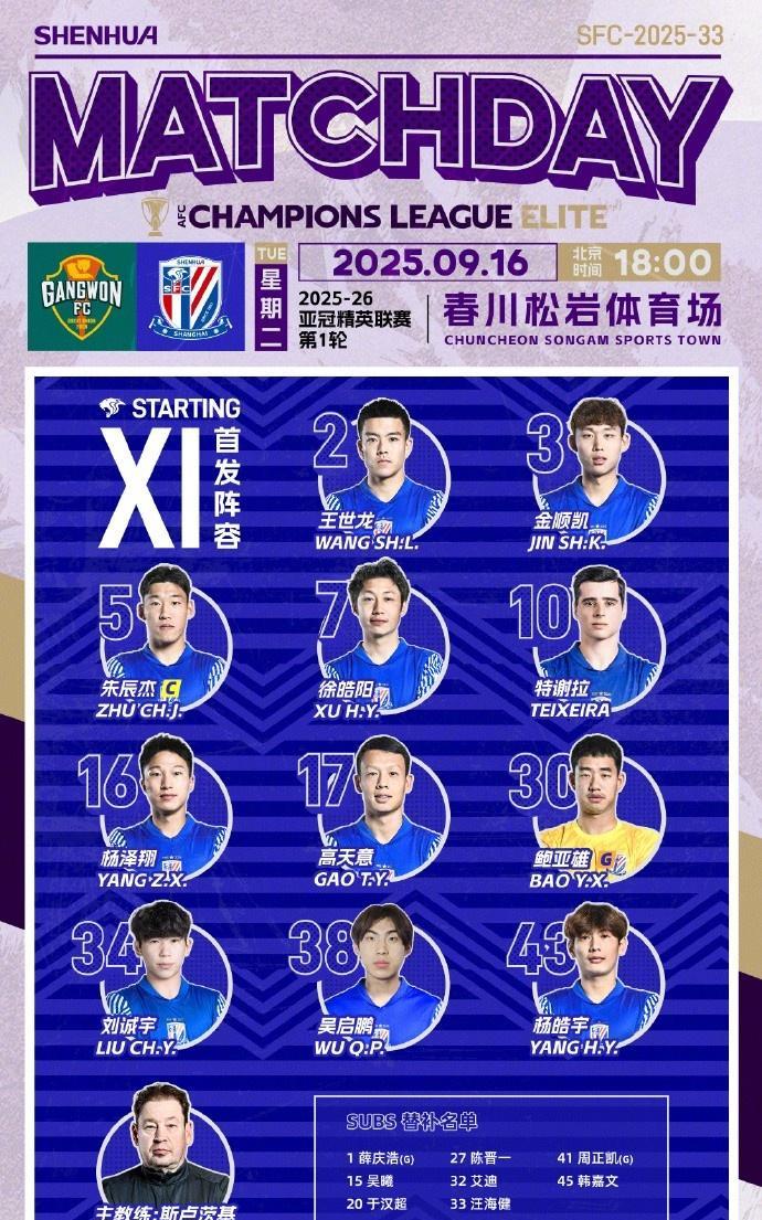 外战轮换、首胜在即 2025-2026亚冠精英联赛东亚区第一轮,上海申花客场迎战