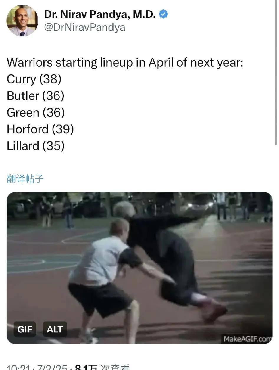 - 斯蒂芬·库里:37岁 五人合计179岁,平均年龄35.8岁。 就这阵容怎么看都玩儿不过西部的小年轻们吧,正所谓乱拳打死老师傅,下赛季的勇士队让人担心。