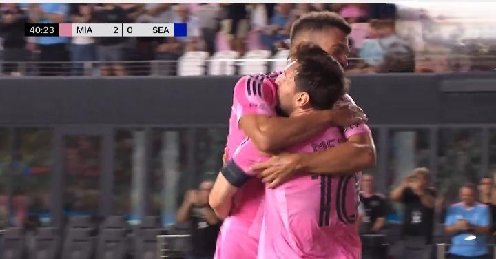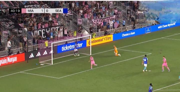 第40分钟阿尔巴妙传助攻!梅西闪电破门,半场独揽一球一助,迈阿密2-0领跑战局!