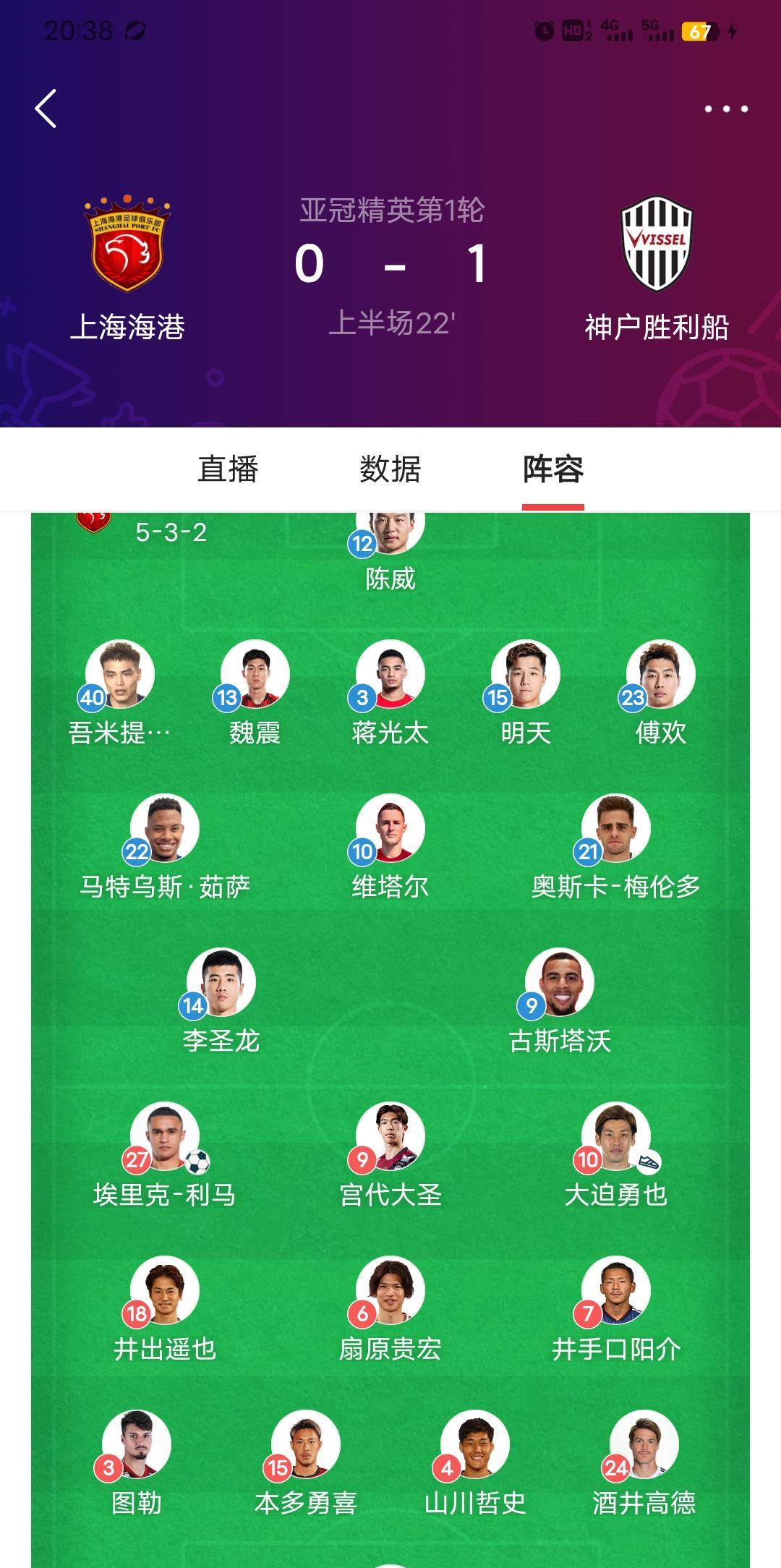 面对日本队上海海港也不行了 亚冠比赛上海海港丢球了,比赛第20分钟神户改写了比分