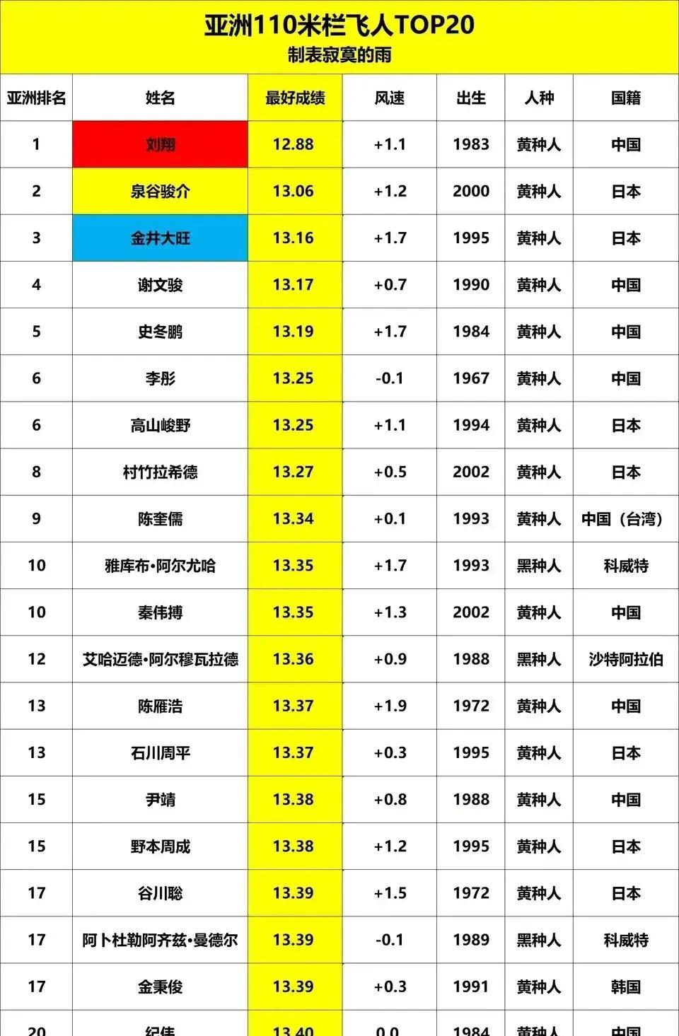 史冬鹏还是很厉害的!和刘翔同处于一个时代,让人觉得史冬鹏就是刘翔的陪练。因为国内比赛拿不了冠军,国际比赛最多半决赛,偶尔碰见刘翔不参赛,拿个全国冠军。 现在看成绩,史冬鹏放在中国任何一个时代,都是吴艳妮式的存在。最起码国内老大。 13秒19,最好成绩。成绩多年稳定在13秒3到13秒5之间。这个数据现在看来也是中国历史上比较好的,并且是在我国本土以外的比赛中创造的,这个很难得!