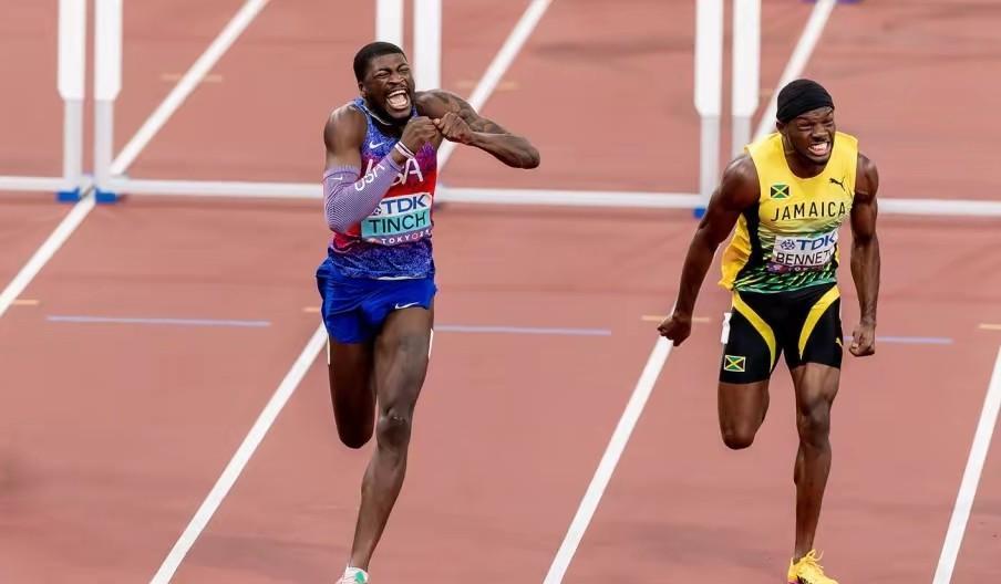 东京田径世锦赛男子110米栏决赛,美国选手柯德尔·廷奇以12秒99获得冠军,牙买加选手本内特和梅森分别以13秒08和13秒12获得银牌和铜牌,八月份跑出12秒92年度世界第二好成绩的东道主混血选手村竹拉希德以0.06秒之差错失奖牌。中国队三位参赛选手都止步半决赛。