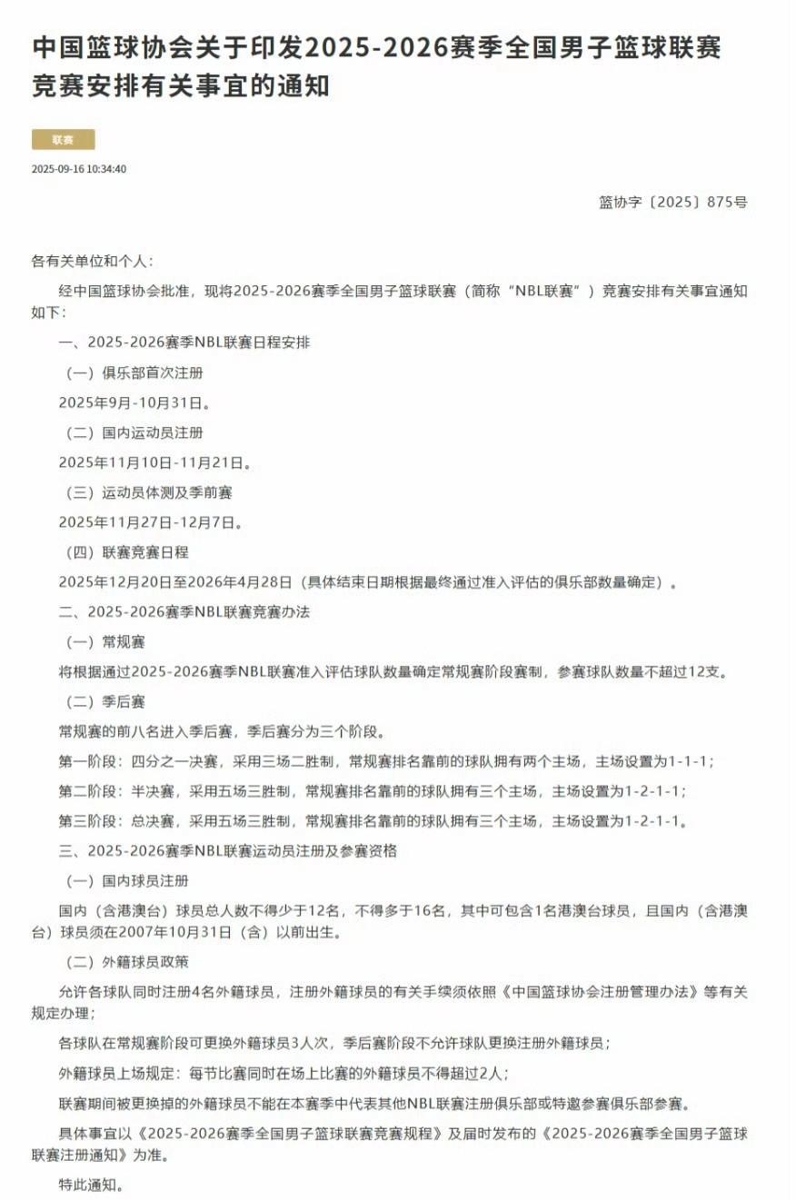 多支CBA球队省份计划筹建NBL球队! 近日,中国篮协公布了新赛季NBL联赛具体安排,其中明确表示新赛季参赛球队不超过12支,除了本赛季参赛的八支球队外,目前河南焦作文投和安徽文一已经确定回归,而剩下两个名额中,据悉有一支拥有多家CBA球队的省份正在筹建参加NBL联赛,结合CBA分布情况,南方球队中只有广东、江苏和浙江三个省份拥有多支CBA球队,而江苏目前有NBL的苏科雄狮,因此大概率将会是广东和浙江两个省份中产生。 另外,此前报道称山东某支业余球队也在积极争取参加NBL联赛。