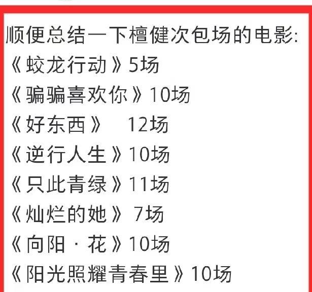 檀健次给白敬亭新剧《不眠日》包场了1000个线上观影座位!檀健次白敬亭怎么认识的啊? 只要朋友上新剧,内娱宣传委员檀老师必准时出现,檀健次真是体面人啊!希望檀健次主演的电影《震耳欲聋》上映后,耀客传媒能展示下实力。 檀老师真的体面又真诚,都忘了他包过多少电影电视剧了?顺便总结一下檀健次近年包场支持过的电影! 《蛟龙行动》5场 《骗骗喜欢你》10场 《好东西》 12场《逆行人生》10场 《只此青绿》11场 《灿烂的她》 7场 《向阳·花》10场 《阳光照耀青春里》10场 《无名之辈2》 10场 上次还奇怪檀健次为什么给电影《无名之辈2》包场,这下找到答案了,原来这个导演是震耳欲聋的监制啊! 健次给我一种对电影很有敬畏心的感觉,不光对电影,他对舞台对工作都很有敬畏心,一个老派作风的文艺工作者! 话说《震耳欲聋》还不震吗?天天跟我说《震耳欲聋》明天定档!明日复明日,国庆我还能等到吗?我已经不关心他什么时候定档了,是不是国庆档了,我只怕他在国庆中间随便找一天上,他要去国庆档就一定要在1号啊! 再不定档不建议定档了,其实现在已经不建议定档了!宣发期太短了,这部电影肯定有很多演技高光,不应该潦草对待!