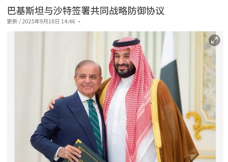 以色列袭击卡塔尔之后,沙特宣布正式与巴基斯坦结盟了!9月18日,根据外媒报道,沙特阿拉伯和巴基斯坦政府在沙特首都利雅得正式签署共同战略防御协议。该协议声称,第三方针对两国任何一国的攻击将视为对两国的侵略。沙特阿拉伯通讯社报道则声明称,该协议旨在发展两国在国防领域的合作,并加强对任何侵略行为的联合威慑。