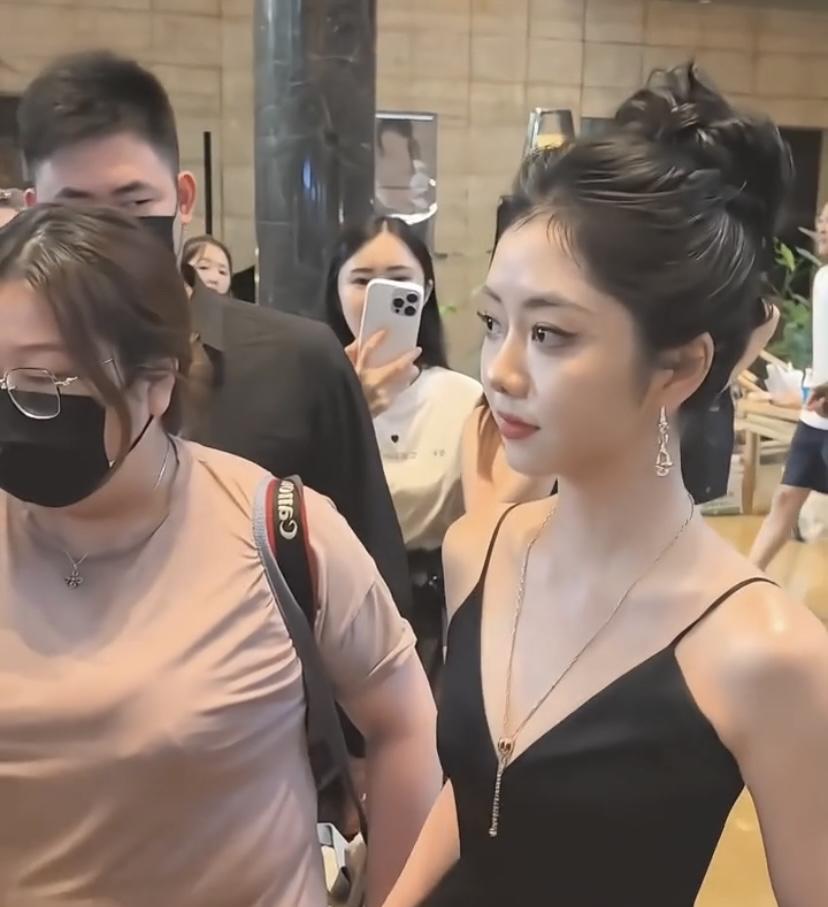 9月21日成都金熊猫盛典红毯上,谭松韵一袭黑色纱网吊带裙亮相,优雅得像只黑天鹅。