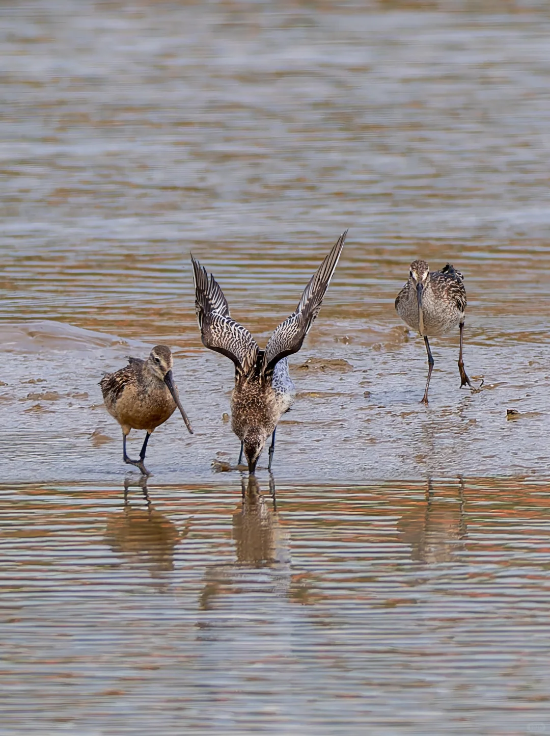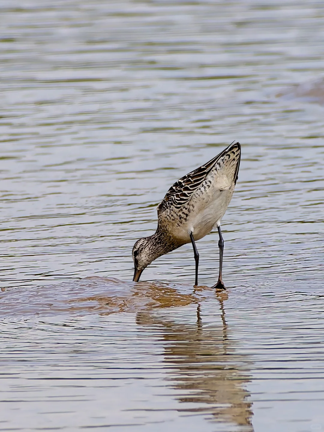半蹼鹬,Asian Dowitcher,鸻形目丘鹬科半蹼鹬属。国家二级保护动物。半蹼鹬是典型的长途迁徙鸟类,迁徙路线横跨东亚至澳大利西亚。它们在我国国东北北部繁殖,冬季到东南亚和澳大利亚北部过冬。迁徙途中会经过中国东部沿海,一般大部队就停几个大站:南大港湿地、崇明东滩、连云港、盐城滨海等,较少在广东沿海歇脚,所以在广东很少见到这种大鹬。