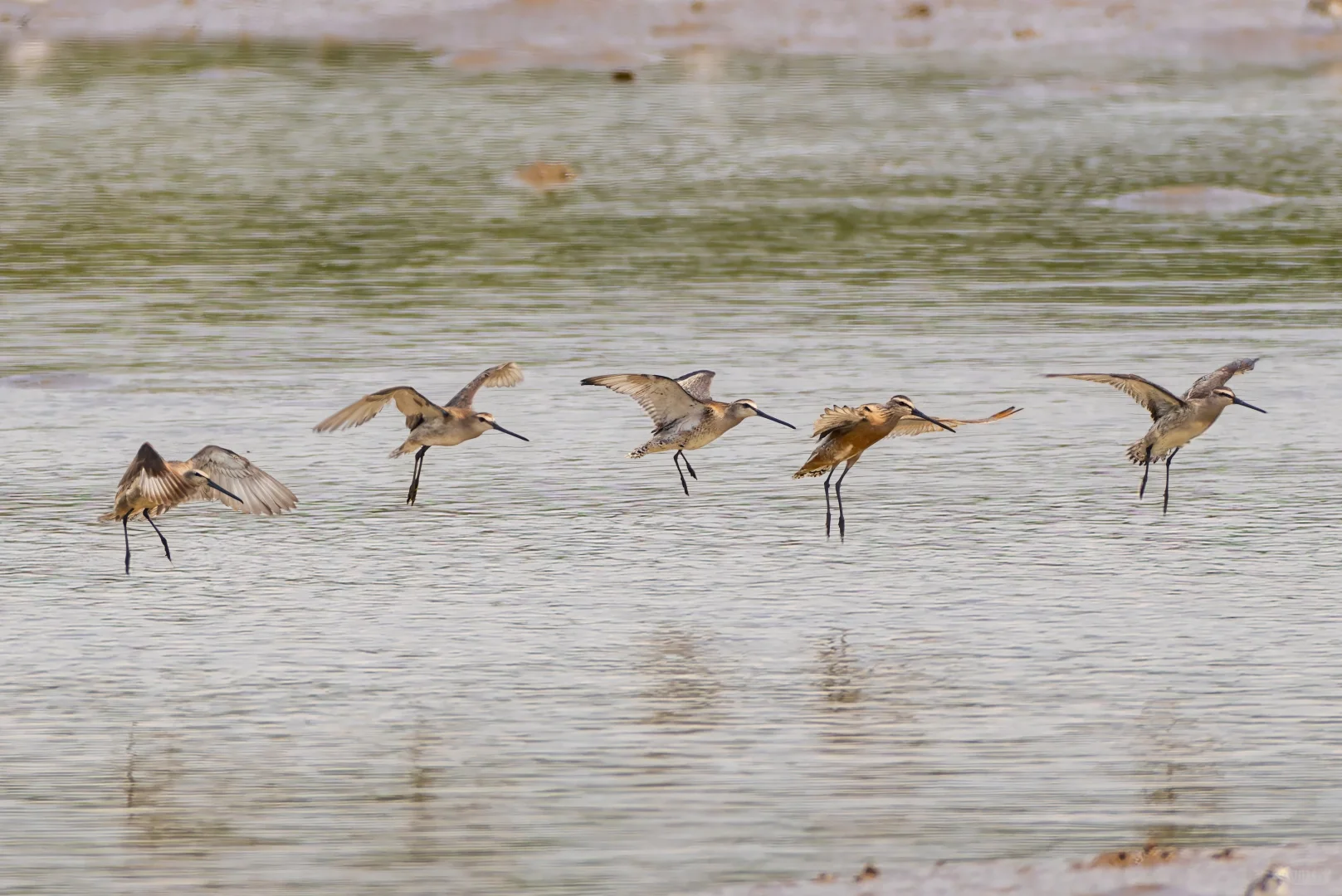 半蹼鹬去年在深圳湾出现,今年到广州南沙海滨现身,看上去这一群5只还挺恩爱互助。