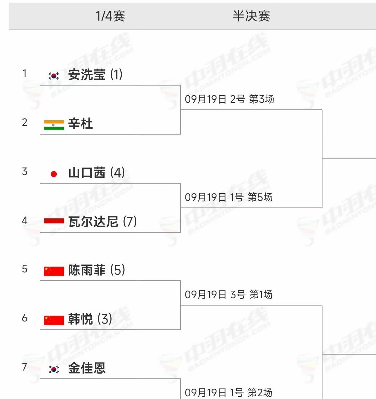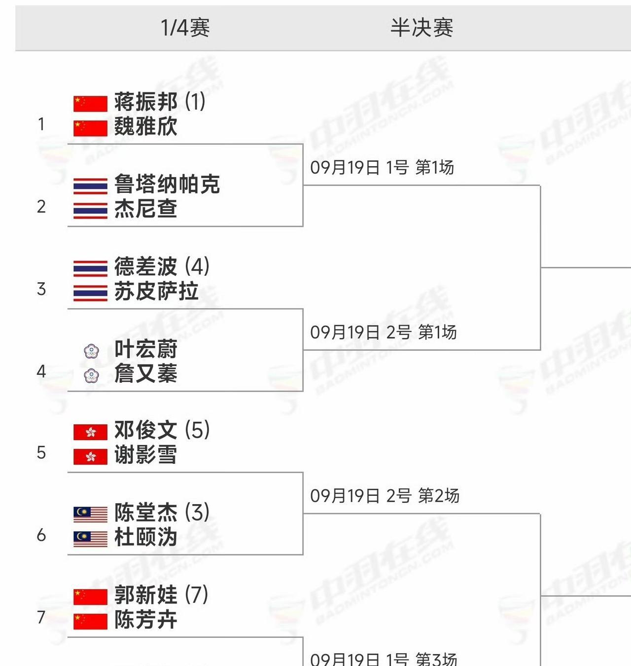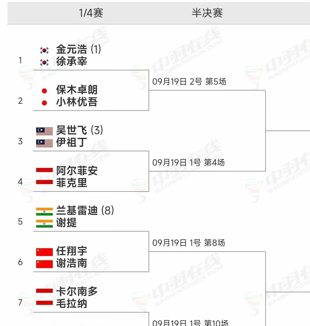 #2025年中国羽毛球大师赛#各单项八强分布情况如下图 男单:国羽争取会师 女单