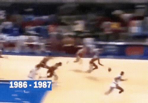 1987 年的乔丹,是进攻最锋利的矛。在上一个赛季的季后赛面对大鸟伯德的凯尔特人,乔丹摧枯拉朽地砍下让伯德直呼上帝在打球的最高63 分后,乔丹仿佛打通了任督二脉似的。 天赋彻底觉醒,1987 年乔丹首次斩获职业生涯的首个得分王头衔,场均得到 37.1 分,并且整个赛季获得了 3041 分,成为自从张伯伦之后的第一人。