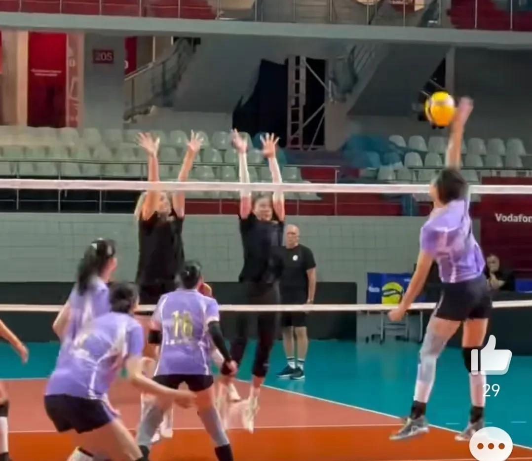 李盈莹随天津女排去加拉塔萨雷拉练,比赛画面。