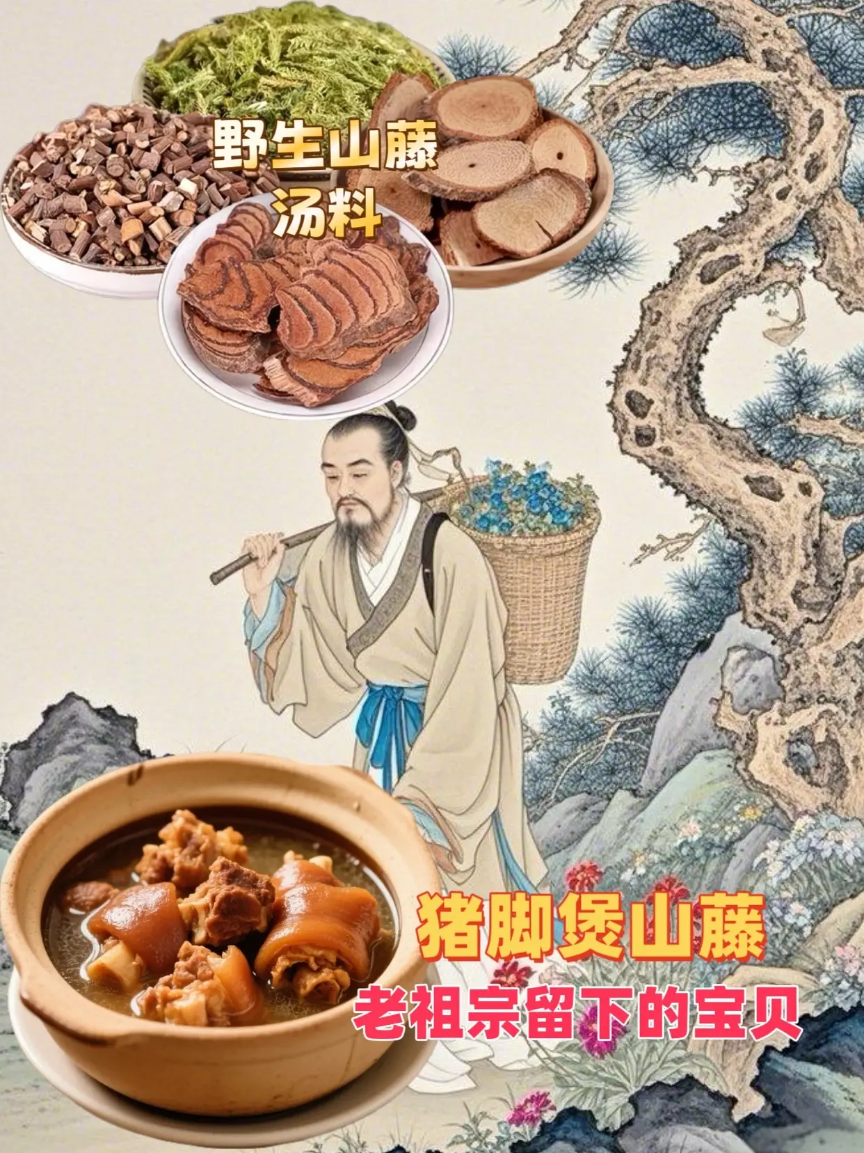 猪脚煲山藤:一只猪脚+汤料+加清水小火煲90分钟即可饮用