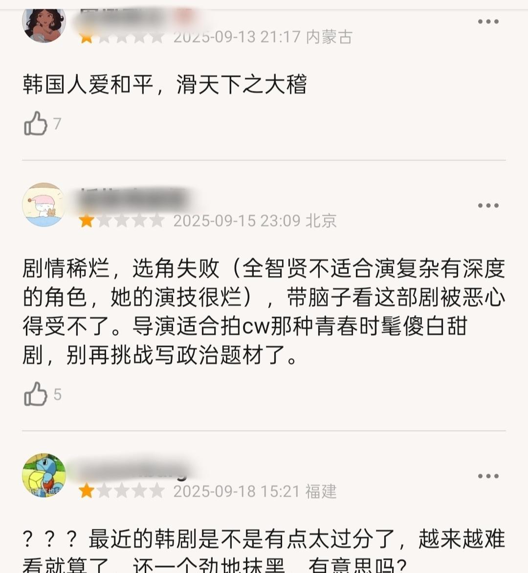 #全智贤新剧翻车,人设崩塌? 谁能想到,曾经凭借《来自星星的你》《野蛮女友》等作品,在中国拥有超高人气、路人缘极佳的全智贤,会因为新剧《暴风圈》陷入巨大争议,被网友吐槽“晚节不保” ! 前段时间,全智贤还现身国内参加商业活动,亲切的互动让粉丝们激动不已,大家纷纷感叹女神风采依旧。可转头她主演的《暴风圈》就狠狠翻车,让人大跌眼镜。 剧里,她饰演的角色说出“为什么中国会偏好战争”这样颠倒黑白的台词,简直是对中国的恶意抹黑。要知道,中国向来坚定地走和平发展道路,为世界和平与发展贡献力量,这种罔顾事实的表述,实在让人愤怒。 而剧中对中国城市场景的呈现也充满恶意。设定在2025年中国大连的场景,剧组却选用香港棚户区,加上灰暗滤镜,把现代化的大连描绘成破败脏乱的地方,这不是故意丑化是什么?更别提剧中反派都讲中文,还频繁出现带有政治暗示的符号元素,满满的都是偏见。 更离谱的是全智贤念古诗的片段,那怪异的腔调、尴尬的表情和生硬的演技,被网友吐槽“充满性缩力”,“像丧尸吟诗” 。曾经演技灵动的女神,如今却如此拉垮,实在让人失望。 全智贤作为主演,对剧本内容肯定有一定的选择权和判断力,说出这样的台词,呈现出这样的表演,无论如何都难以开脱。这次事件,也让大家看清了某些韩星的“双面人”做派,一边想在中国捞金,一边又在作品里夹带私货、不尊重中国文化和观众。只能说,全智贤这次真的伤透了粉丝和观众的心,口碑和形象也一落千丈。 #第一次看到全智贤有性缩力#