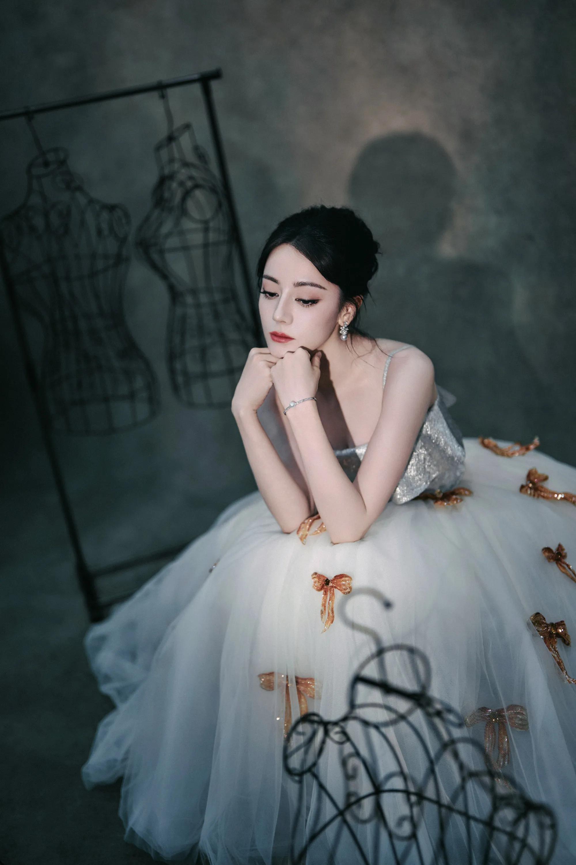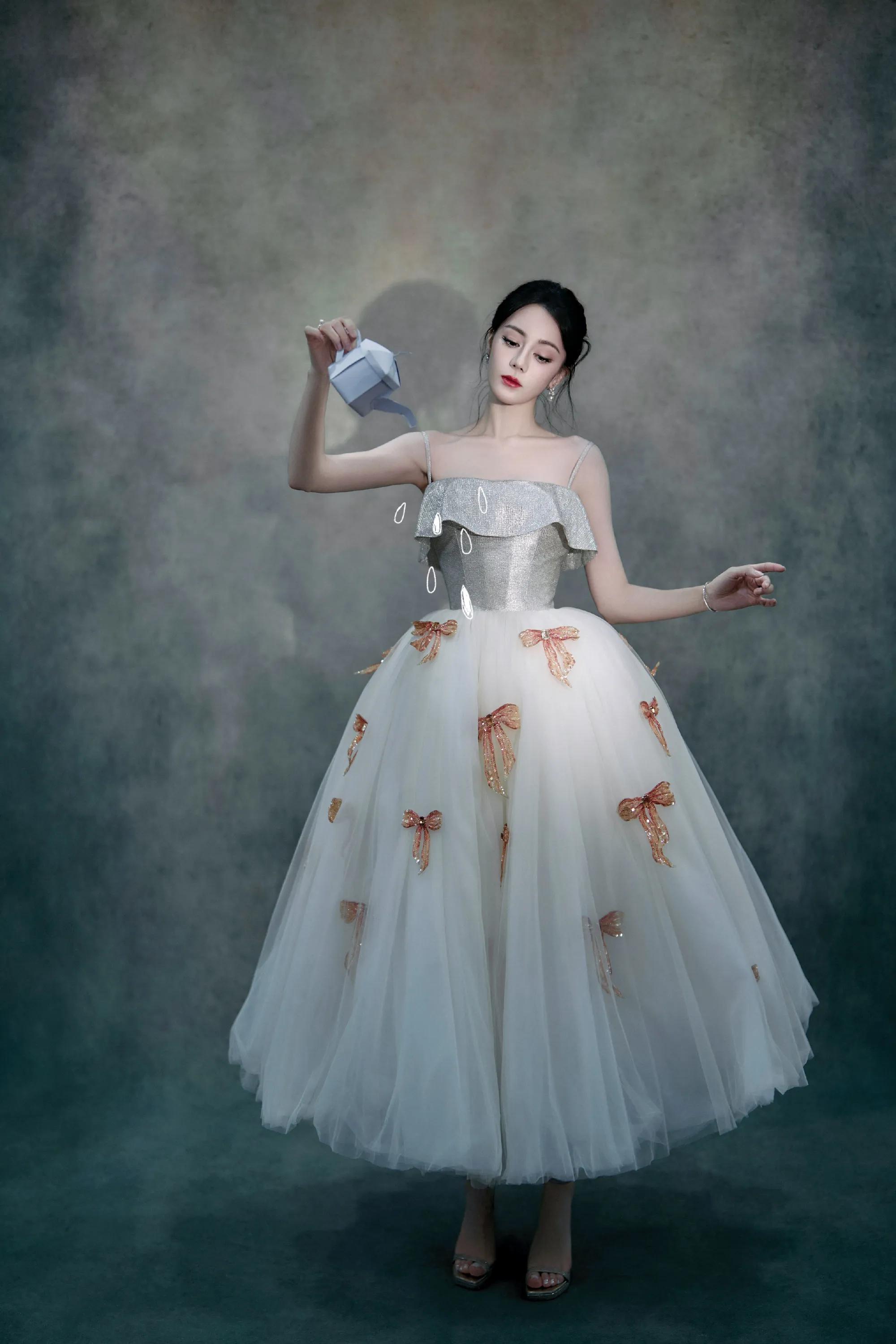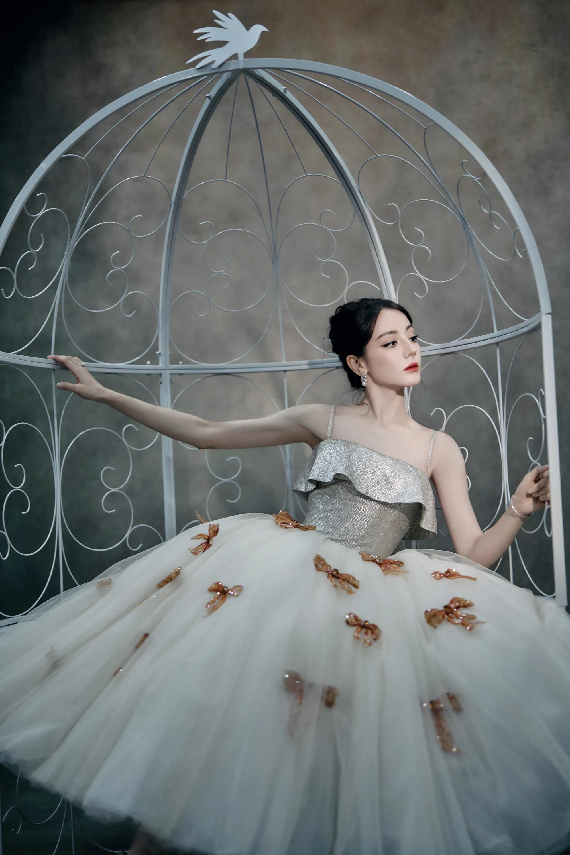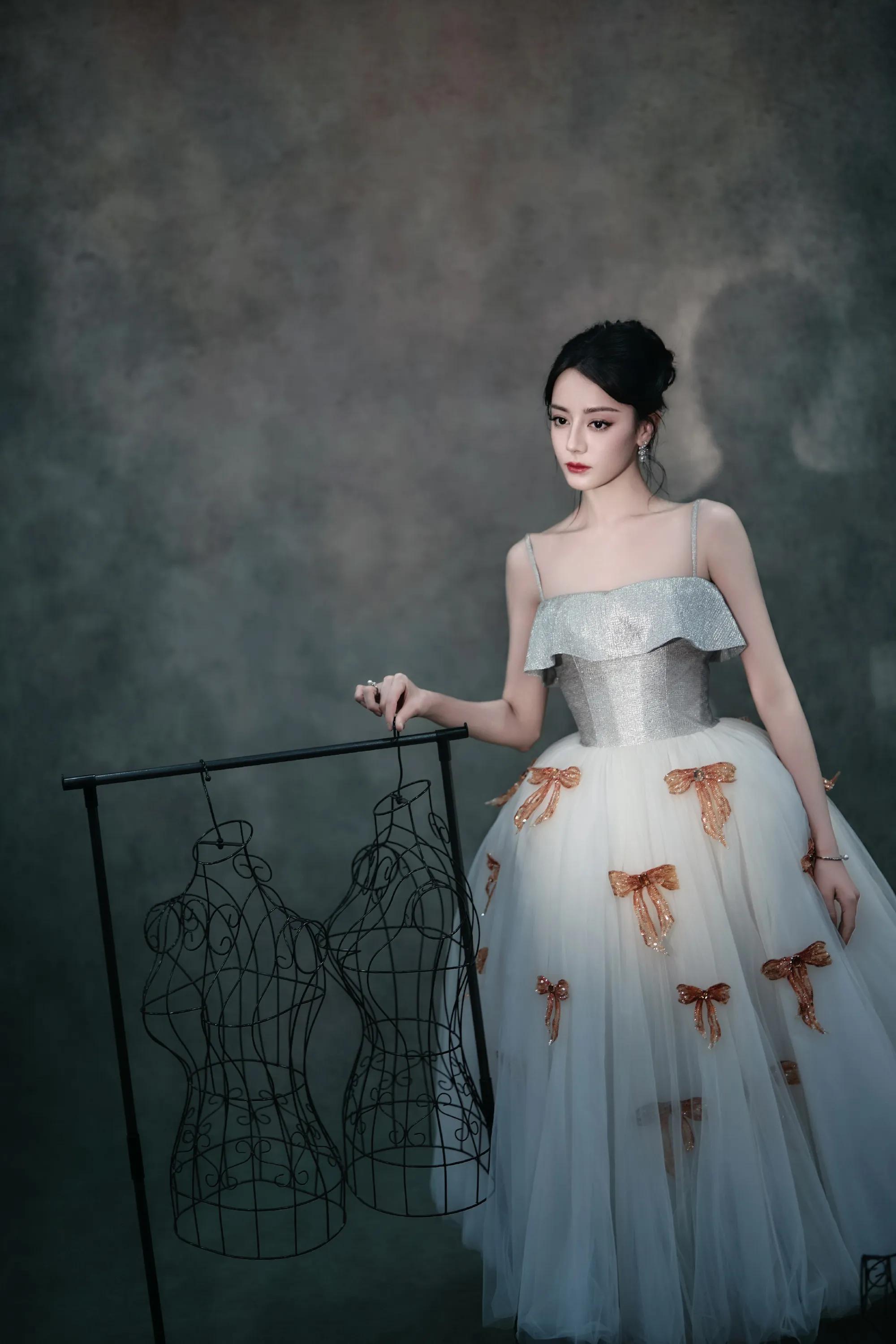 迪丽热巴油画意境典雅,矜贵长裙美得不要不要的