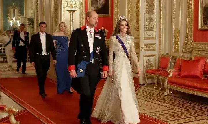 川普女儿晒了4张访英的照片,写道“很荣幸出席在温莎城堡举行的国宴。” 蒂芙尼与丈夫迈克尔·布洛斯、美国务卿鲁比奥以及妻子珍妮特合影。 她还分享了苹果CEO蒂姆·库克、凯特威廉的照片。