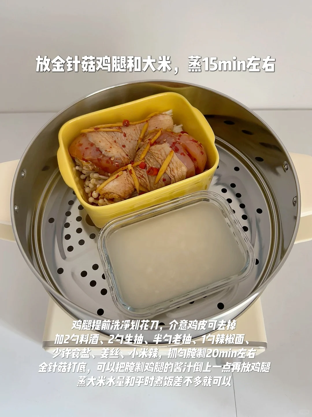 1⃣️ 金针菇鸡腿(蒸30min左右)