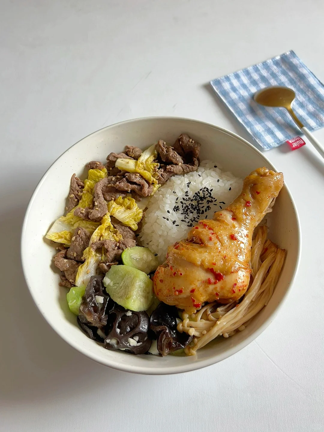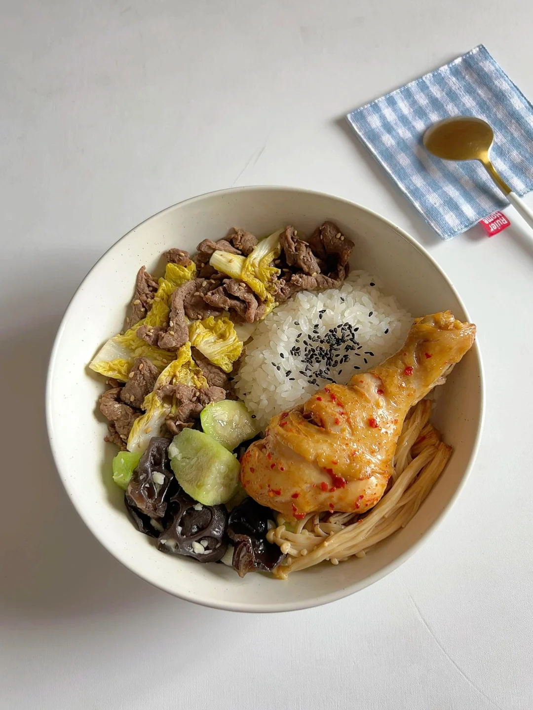 今天吃的是金针菇鸡腿➕娃娃菜牛肉➕蒜蓉丝瓜木耳,做法简单一锅出!随便拎出来一道都好吃[害羞R]
