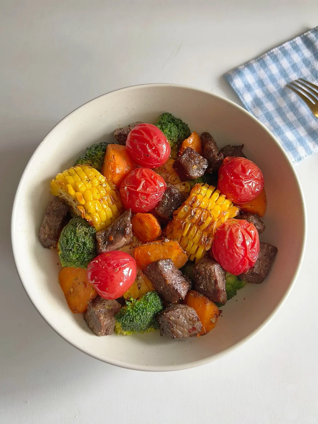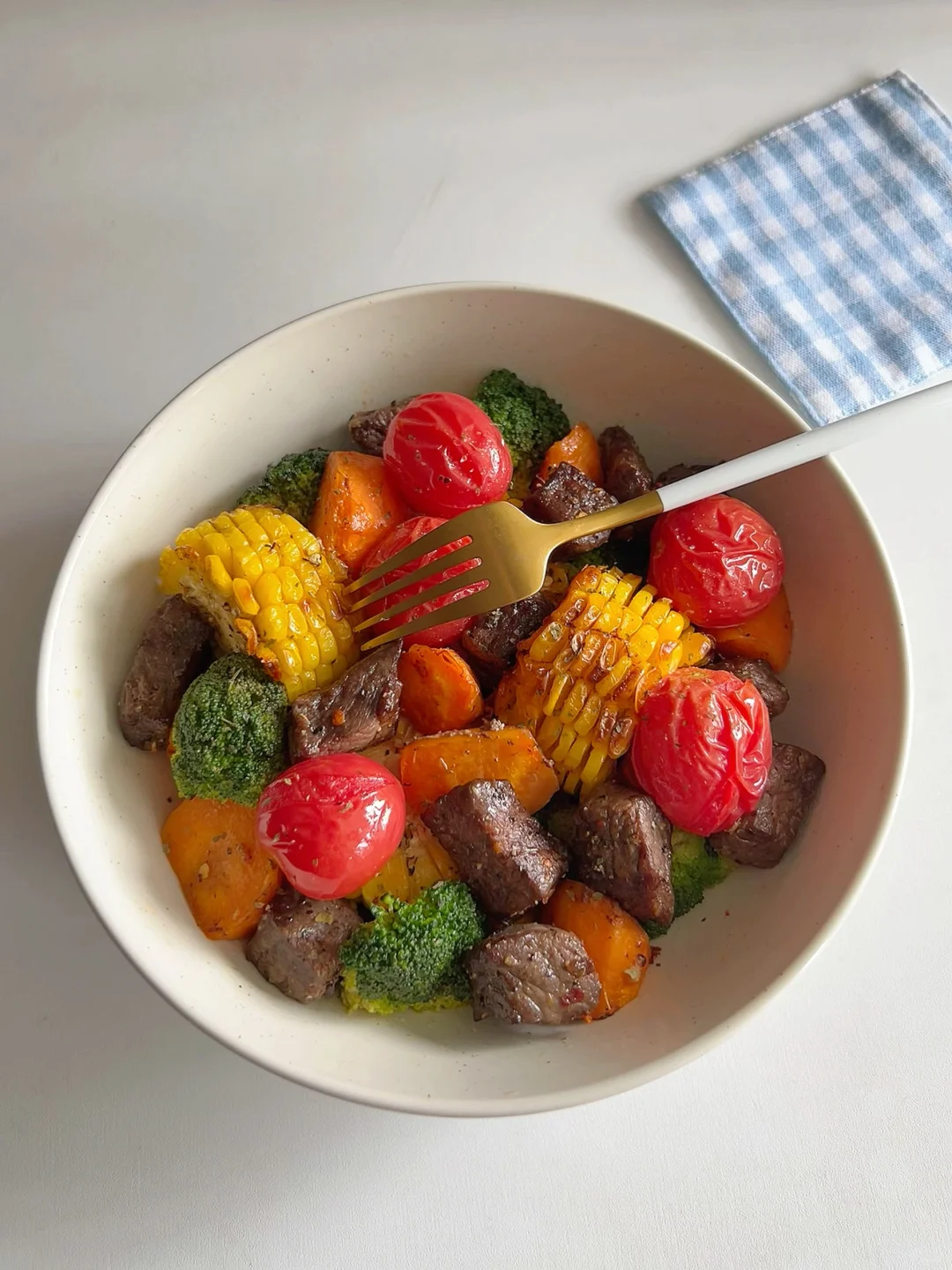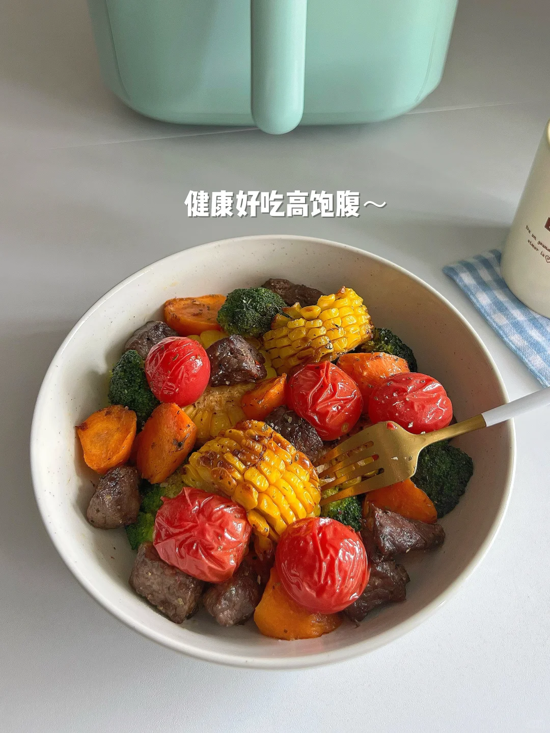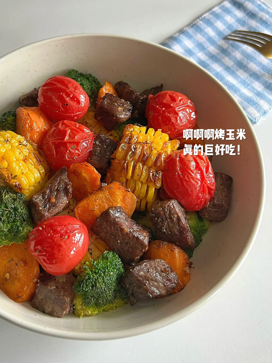 今天吃的是烤玉米➕烤牛肉➕烤时蔬