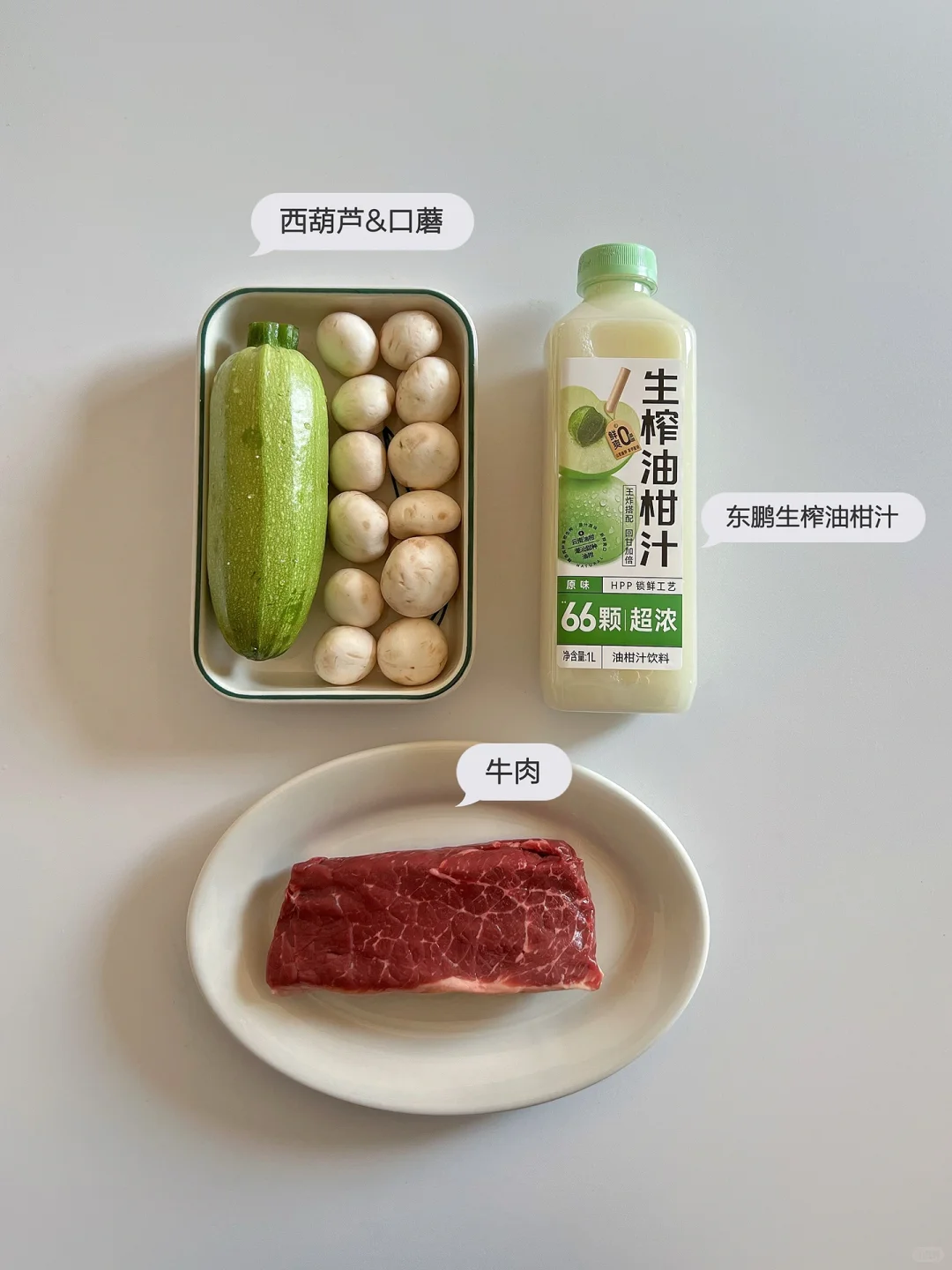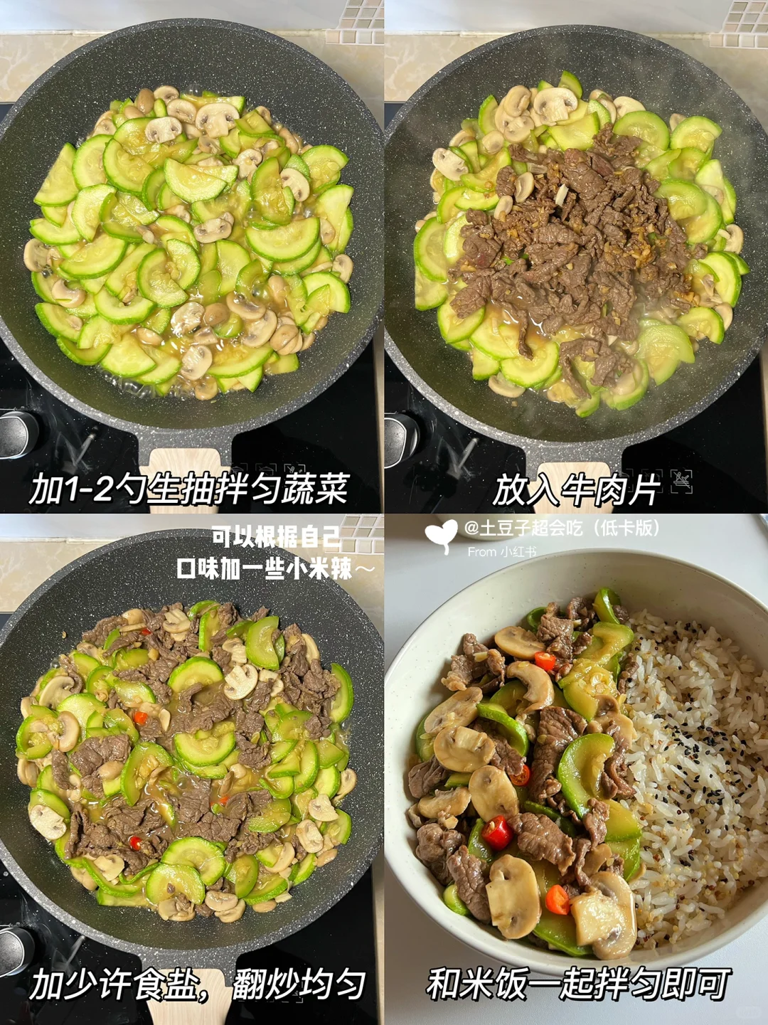 🥩 食材:西葫芦、口蘑、牛肉、大蒜