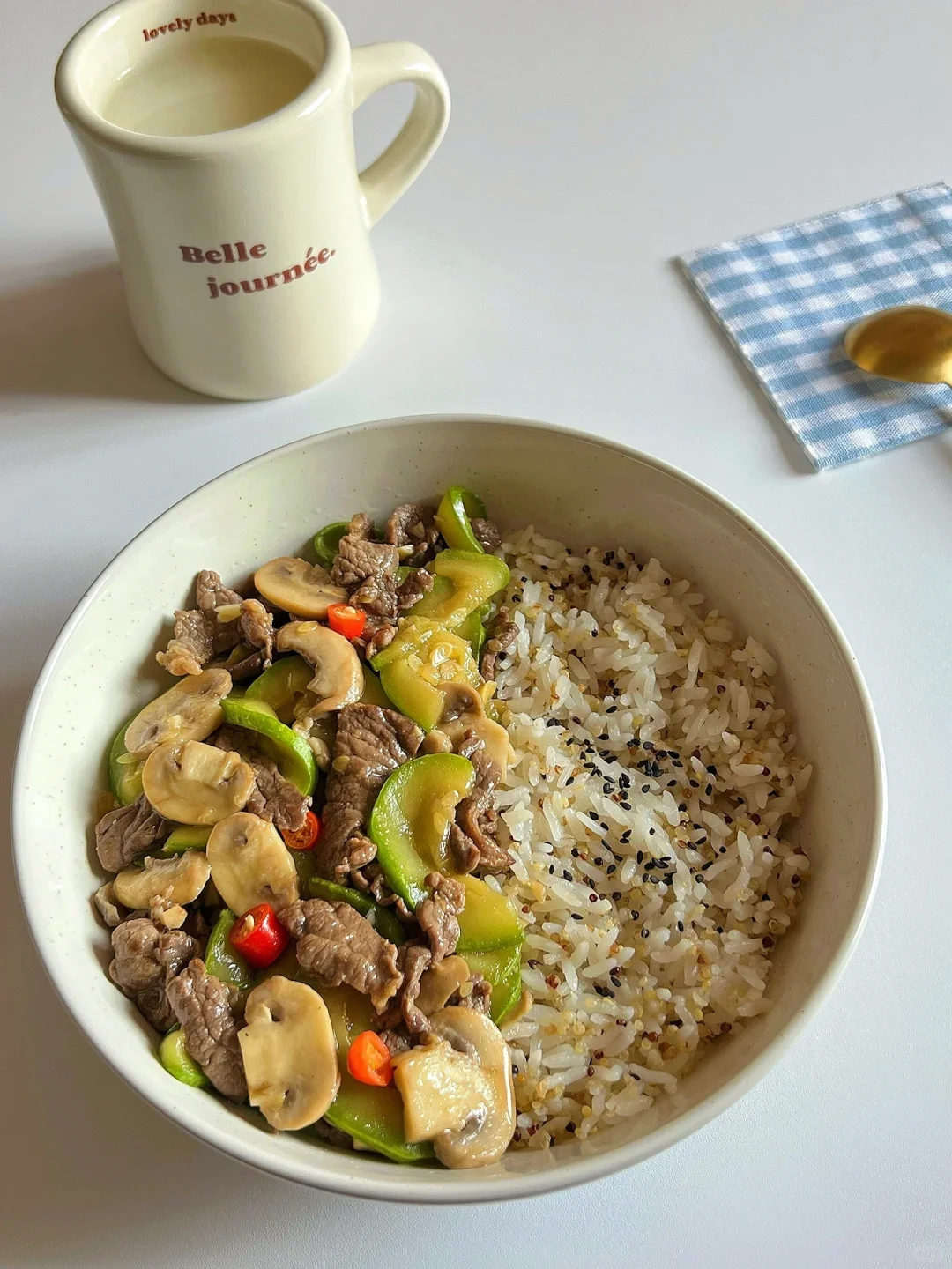 西葫芦口蘑牛肉饭🥣