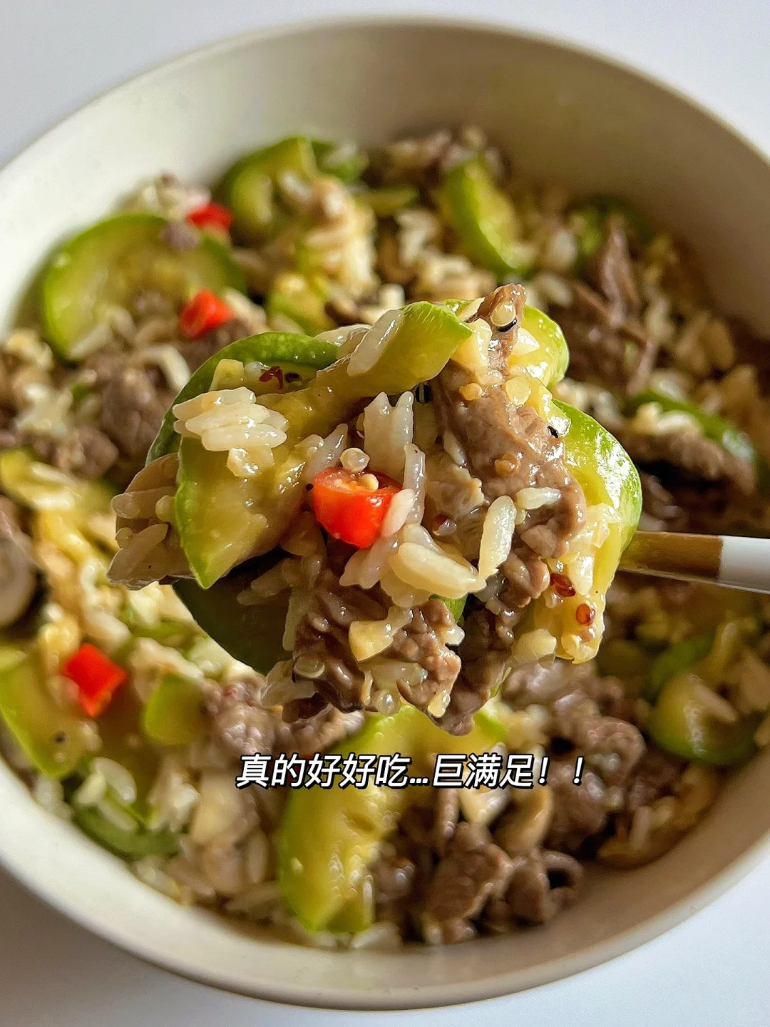 一口牛肉➕一口蔬菜➕一口米饭,绝了呀~