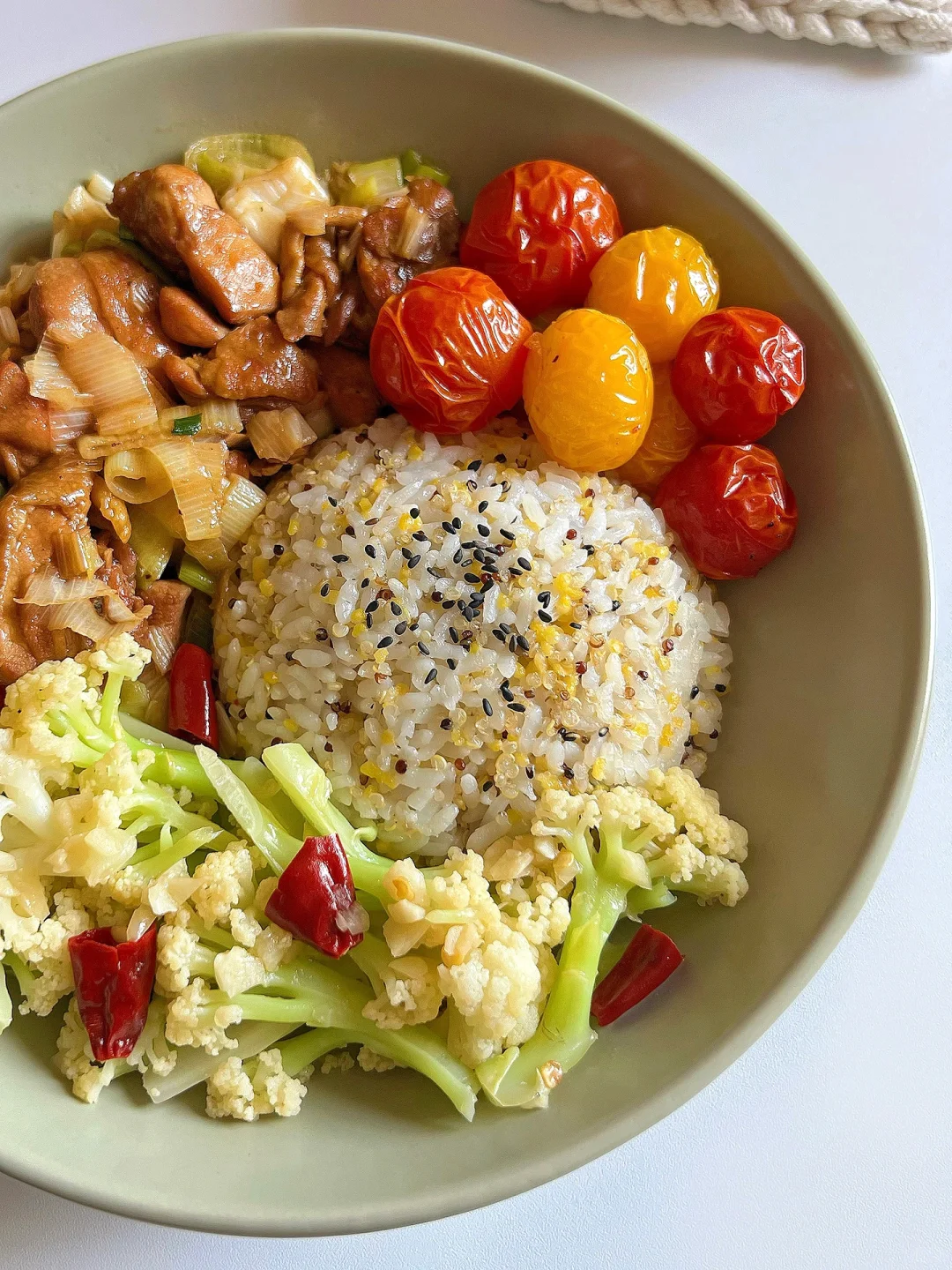 1⃣️ 小番茄洗净,加一点点油、适量黑椒海盐,拌匀;