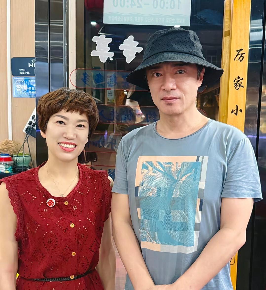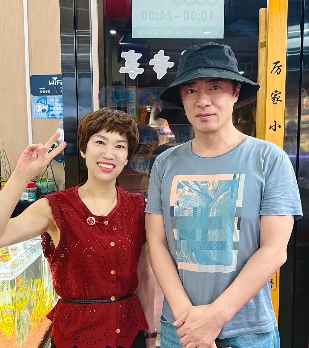 56岁何中华在浙江金华一家餐馆吃饭,和老板娘拍摄了合影。他真人高大帅气,平时很自律,过了半把年纪,身上完全没有中年油腻感。