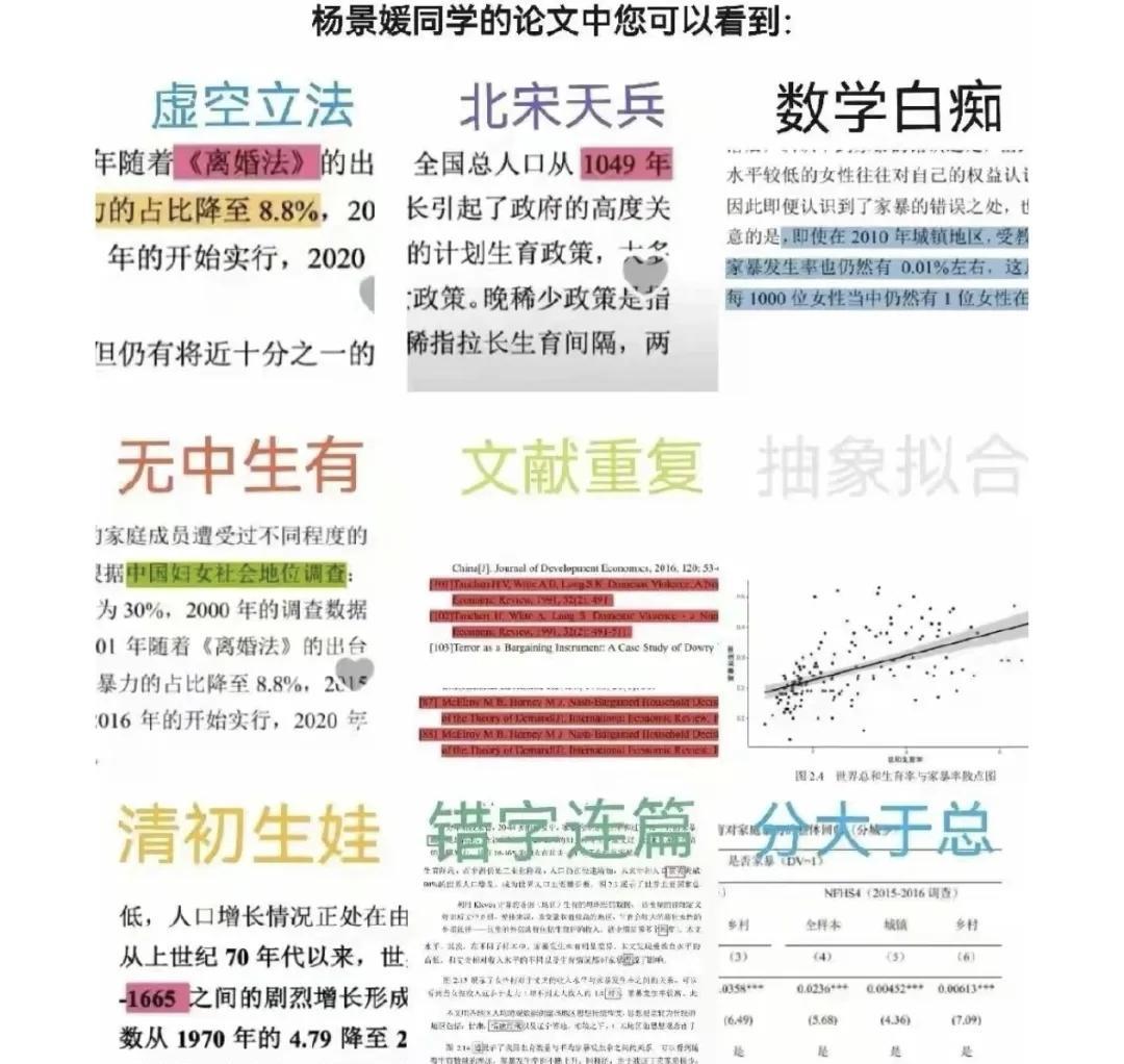 翟天临拉高的毕业论文底线被武汉大学狠狠踩下! 从武汉大学官方通报来看,武大承认了一个事实,毕业论文错误很多,面对修改意见,几乎不作修改,依然可以毕业。 为什么说几乎不作修改呢,因为杨景媛的硕士论文最终样子大家都看到了,足以说明她几乎没作修改。 但是就这个样子,她依然可以毕业,而且武大复核以后,觉得问题不大,维持学位。 翟天临曾拉高国内所有学生毕业论文的要求底线,今天,这条底线被武大狠狠踩下了!