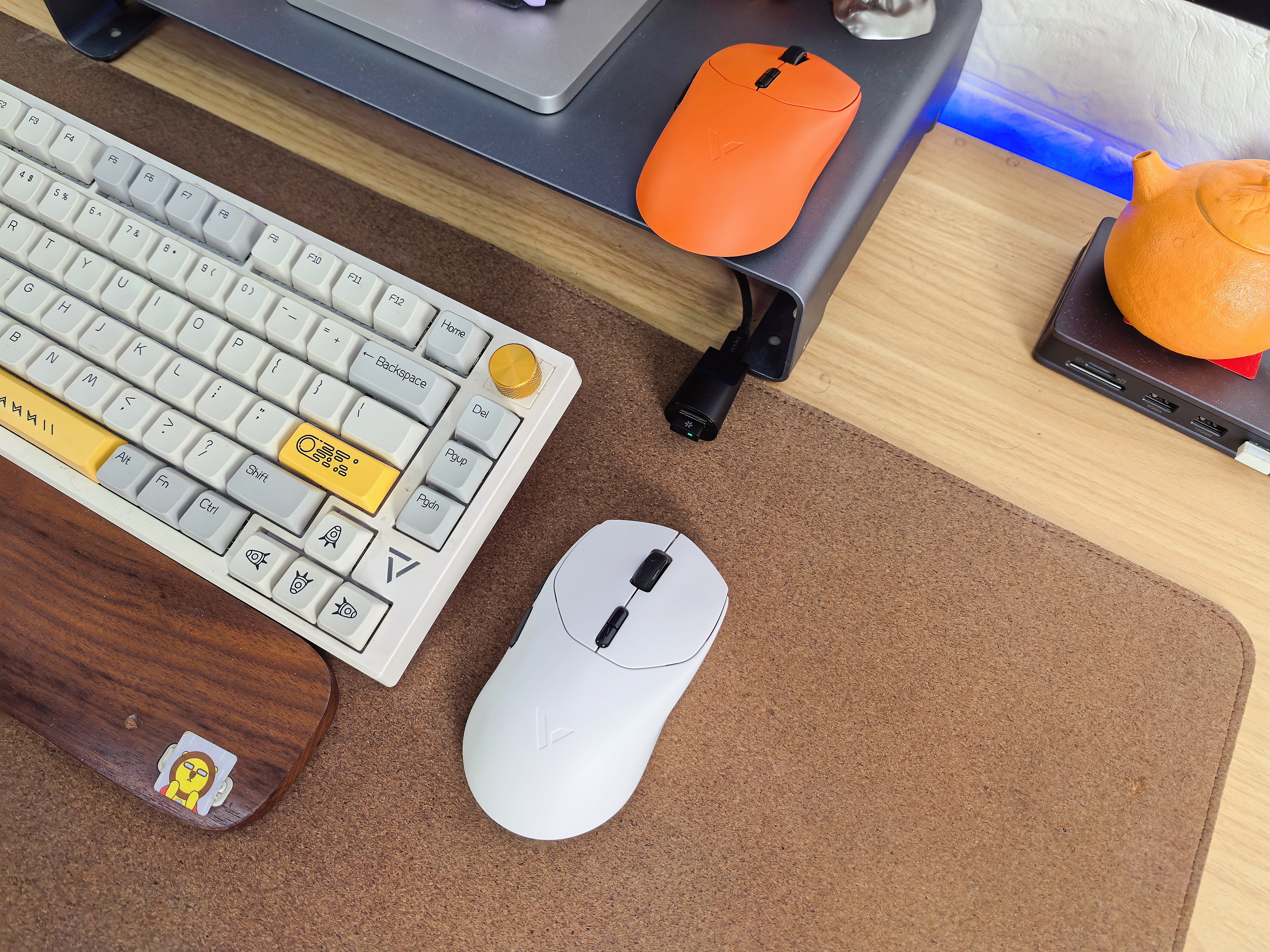 雷柏VT系列又出新品,这次专为中小手型玩家量身打造了VT1系列右手对称式电竞鼠标,不管啥手型、啥习惯,VT系列里总有一款适合你!百元价位直接叫板千元旗舰鼠标了。 型号是VT1和VT1 MAX两款,都支持原生有线/无线8KHz回报率,首发Nordic 54系列芯片,搭载原相3398/3950 Ultimate旗舰传感器,可以做到性能拉满不掉帧。 三款配色可选,我入手了皎月白max和焰影橙标准版,表面有亲肤涂层(VT1MAX全系&VT1标准版焰影橙)和类肤磨砂工艺(VT1标准版皎月白&星空黑)可选,手感细腻不打滑。119mm对称机身,收腰设计,指握、抓握超级跟手,万金油设计,尤其适合17-19cm的手长。 重量仅约49g,轻得像没装电池!但续航却狠——800mAh电池,1K均衡模式下能用500小时,8K狂暴竞技模式也能顶85小时(MAX版)!这表现,超轻无线鼠标里算是顶尖了吧。 微动手感清脆,VT1是欧姆龙机械微动1亿次,VT1 MAX升级定制光微动1.2亿次寿命,点击反馈一致性强。 驱动也别小看,雷柏A Hub兼容Windows&macOS双系统,参数调校、固件更新、配置文件跟随应用切换,不同使用场景自动切换一气呵成。甚至支持网页驱动,临时改设置,方便得离谱。 FPS玩家狂喜:超高扫描频率+低延迟,跟枪精准、微操更稳。 一句话:如果你是中小手型+对称鼠标党,追求极致性价比,雷柏VT1系列,闭眼入没问题!