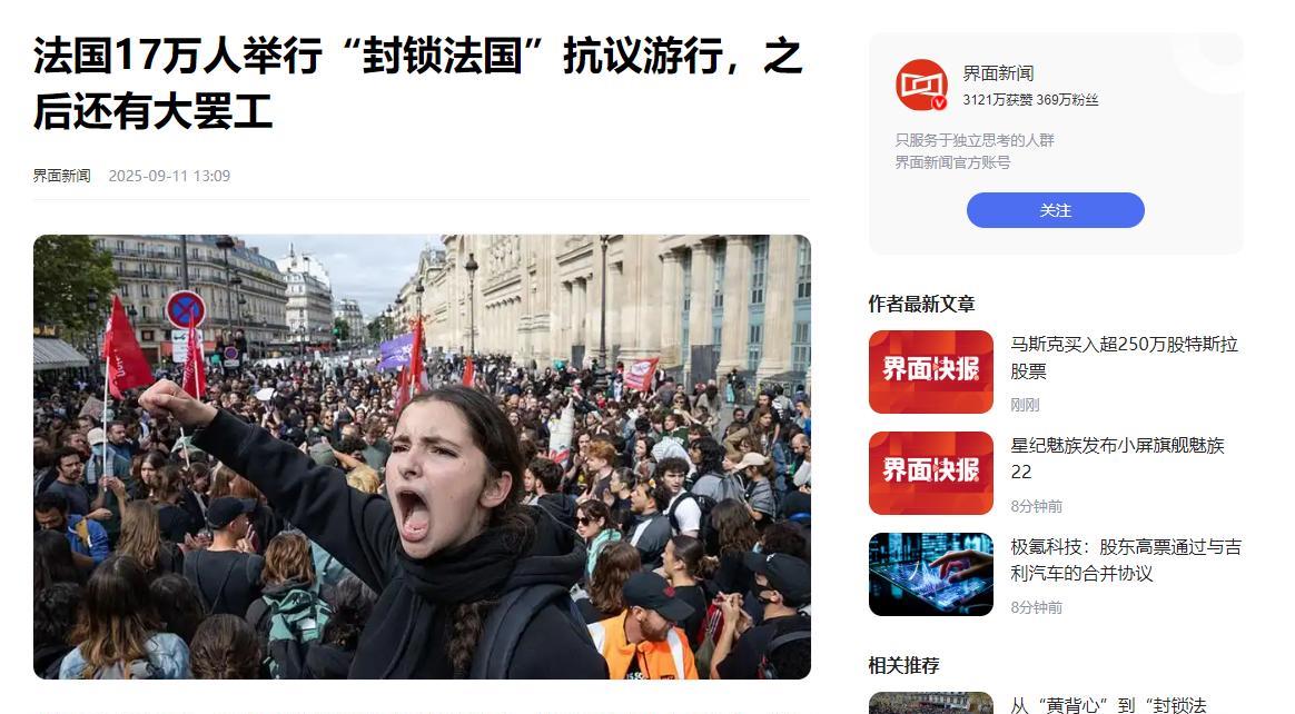 法国街头:抢奢侈品、烧汽车,全境乱糟糟!以前躺着拿福利的欧洲巨婴,如今连少两天假都扛不住,根子早烂透了! 法国总理贝鲁在议会公布2026年预算案时,宣布要削减438亿欧元财政支出,具体措施包括减少公共假期、冻结养老金上调、提高医疗支付比例。 这份被媒体称为“福利终结者”的方案,瞬间点燃了民众的怒火。巴黎郊区工人埃里克盯着手机里的新闻,拳头攥得发白:“我父亲在雷诺工厂干了40年,退休金才1800欧,现在政府连这都要砍?” 类似的情绪在全法蔓延。数据显示,法国社会福利支出已占GDP的31.6%,远超德国的25%和英国的22%。更致命的是,这些钱全靠举债维持——法国债务占GDP比例达116%,每年支付的利息就超过520亿欧元,比国防预算还高。 当贝鲁在电视上解释“必须改革”时,马赛港的失业青年让-吕克正把燃烧瓶塞进垃圾桶:“他们让我们少放假、多交税,自己却坐在爱丽舍宫吹空调!” 9月10日,法国总工会一声令下,25万人涌上街头。巴黎奢侈品店成为首当其冲的目标:LV门店的防盗卷帘门被液压钳剪开,暴徒抱着皮包冲出时,店内警报声与欢呼声混成一片。 香奈儿店的模特假人被推倒,玻璃橱窗上喷着“马克龙下台”的血红色大字。里昂的ZARA门店更惨,货架被推倒后,衣服像垃圾般堆在门口,有人甚至开着卡车来装“战利品”。 暴力迅速升级。南特的消防车被燃烧瓶击中,两名消防员受伤;马赛图书馆的百年藏书在火海中化为灰烬;巴黎北站的铁路信号系统被破坏,导致全国高铁瘫痪6小时。 警方统计显示,暴乱头三天就有133人受伤,400人被捕,但8万警力根本控制不住局面——在马赛老港,蒙面人用激光笔干扰警用直升机,警方只能发射催泪瓦斯仓皇撤退。 这场暴乱的本质,是法国福利制度与经济现实的彻底脱节。以失业救济为例,法国失业者能拿到原工资75%的补助,这意味着月薪4000欧的白领失业后,每月躺着领3000欧,比许多发展中国家普通人的年收入还高。 这种制度催生了荒诞现象:巴黎郊区有些家庭三代不工作,靠救济金和低保生活;企业则因高昂的社保费用纷纷外迁,导致法国工业占GDP比重从2000年的20%降至2024年的17.5%。 更可怕的是政治生态的扭曲。法国30多个政党在议会互相扯皮,左翼鼓吹“每周四天工作制”,右翼叫嚣“全民基本收入”,却没人敢碰福利改革的雷区。 2010年德国社民党因削减福利导致领导人施罗德下台,这个教训让法国政客们心有余悸——马克龙曾试图推动劳动法改革,结果引发“黄背心”运动持续一年,最终被迫妥协。 法国的困境并非孤例。希腊在2009年债务危机中崩溃,就是因为政府为选票不断加码福利,最终国家信用评级沦为“垃圾”。 意大利、西班牙等国也因高福利陷入“低增长-高负债”循环。如今,连德国这个“欧洲经济引擎”都自顾不暇——2024年德国GDP连续三个季度负增长,默克尔时代积累的财政盈余已消耗殆尽。 当中国新能源车挤满巴黎街头,当德国车企被迫向东方转移生产线,欧洲人突然发现:自己引以为傲的福利制度,早已变成扼杀竞争力的毒药。正如李光耀多年前预言的:“高福利没有前途,它会让社会失去奋斗的动力。”法国今天的暴乱,不过是这场慢性自杀的最终爆发。 截至9月16日,法国全国仍有超过10万人在示威,政府被迫宣布进入“紧急状态”。但真正的问题在于:当民众习惯了躺着领福利,谁还愿意站起来工作?当政党只顾眼前选票,谁敢为国家的未来负责?这场暴乱或许会平息,但法国乃至欧洲的制度性危机,才刚刚开始。 你怎么看法国的这场暴乱?是高福利的必然结局,还是政府改革操之过急?欢迎在评论区留下你的观点!