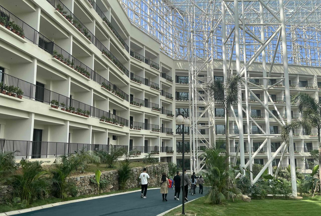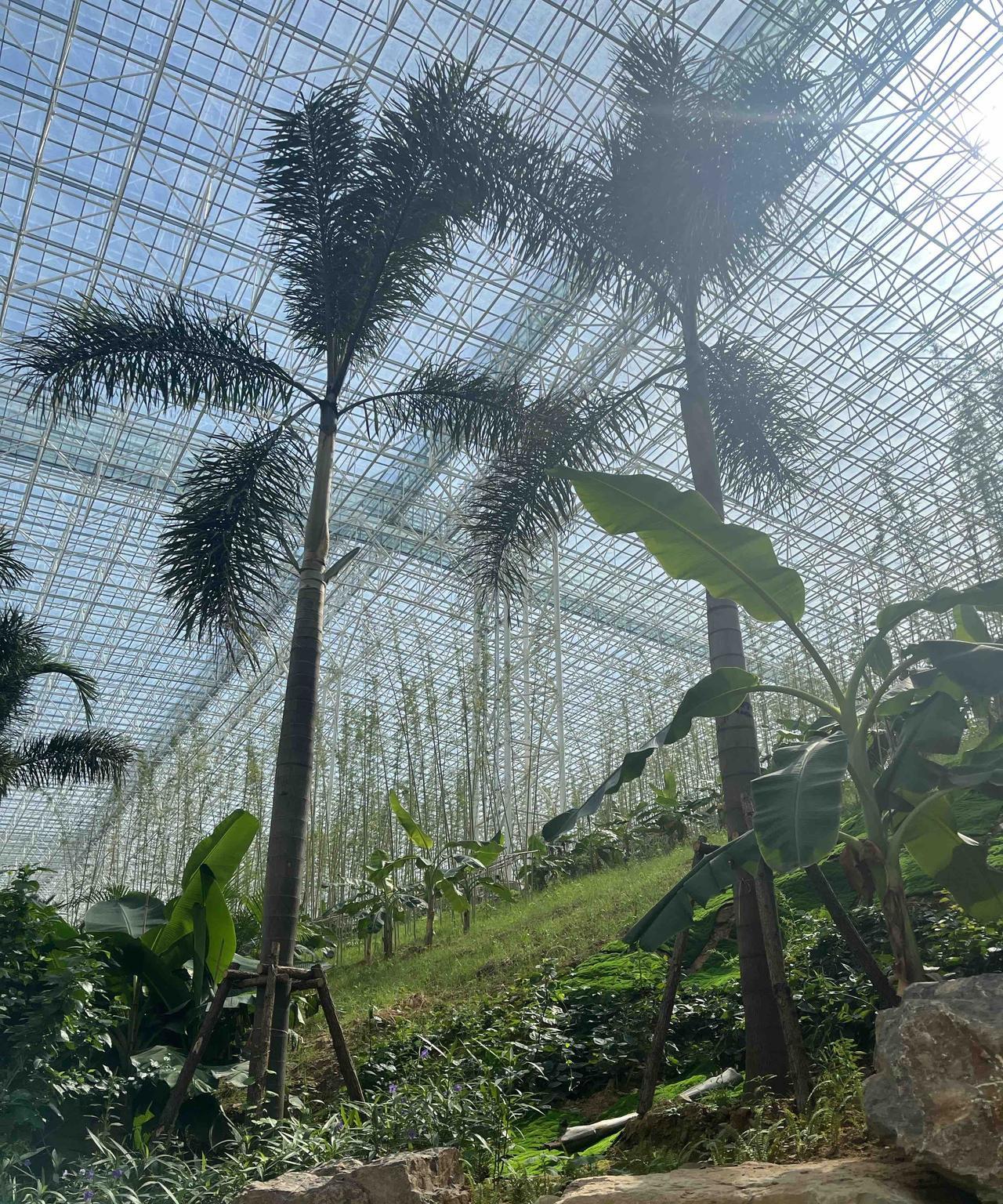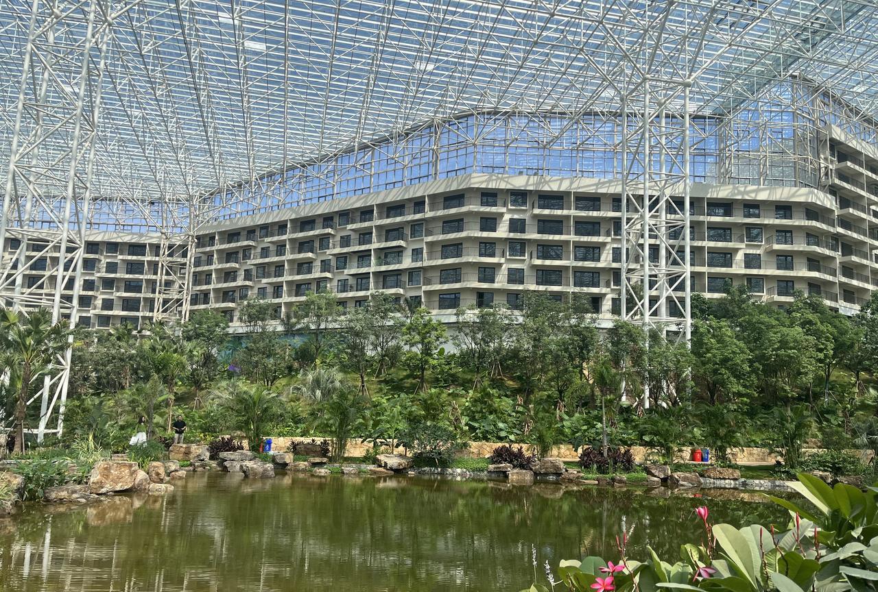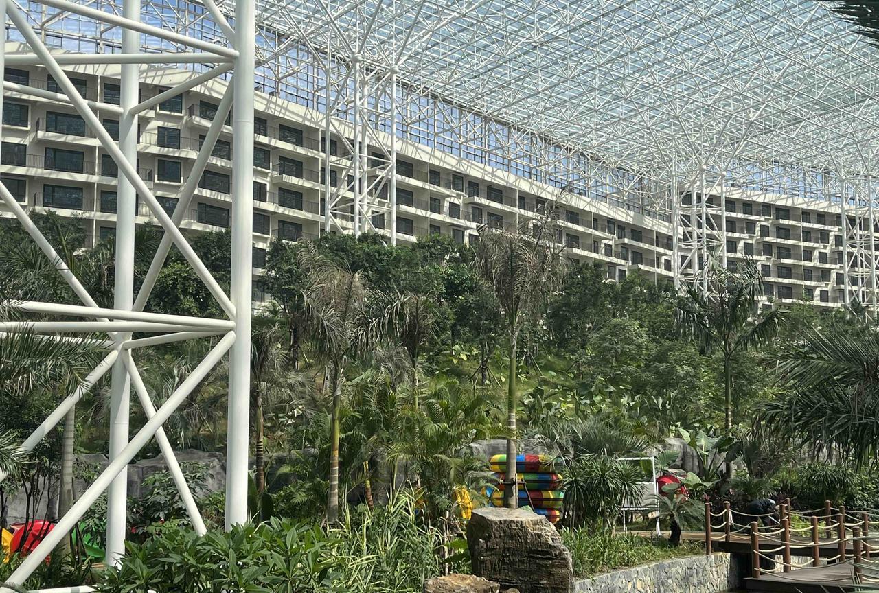 投资23亿元,备受石家庄人民瞩目的西部长青“小三亚”将于今年10月1日对外营业。 今天,笔者有幸提前受邀进入“小三亚”内部参观打卡,拍摄一些图片和视频,供大家欣赏。 “小三亚”位于石家庄鹿泉区白鹿泉乡山谷中,南邻南二环西延,北靠德明古镇、柳仙谷。 占地约400亩,总投资23亿元,其主体是18万平方米的亚热带丛林智能温室,种植了百余种亚热带植物,如旅人蕉、鸡蛋花等。温室内利用智能系统将温度保持在15℃-28℃,湿度在60%以上,营造出四季如春的亚热带环境。 项目还包括按五星级标准打造的阿罗哈国际酒店、雨林湾会展中心以及高端康养社区“檀香岭岫”。