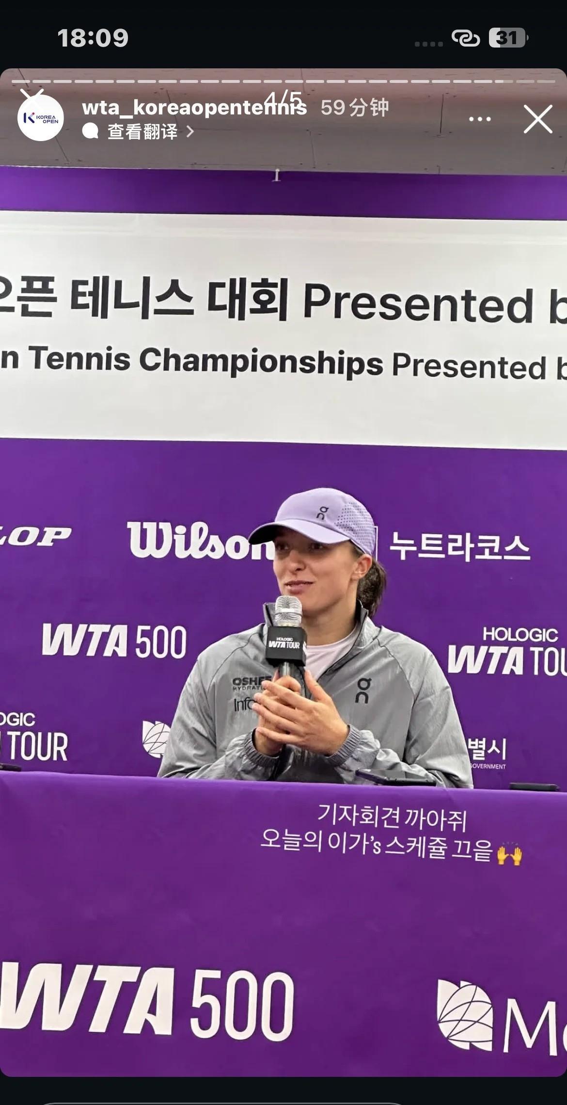 IGA在韩国首尔,于一阵又一阵的欢呼声中,真切地享受着爱豆般的待遇 谁羡慕得哭了,我就不多说了! IGA此次在首尔参加500赛,在韩国现场进行饭撒互动,韩国粉丝简直太幸福啦! 他们不仅能与IGA近距离贴贴,还能超近距离观看训练,这距离感就跟在跟前看没什么差别! 关键是,粉丝们还能和欧尼互动,这待遇真让我嫉妒到发狂! 为啥这么好的机会都在那边呢,隔着屏幕的我暴风羡慕,我也想有这种近距离接触的机会啊! 也不知道中网和武网有没有这样的机会呢! #晒图笔记大赛#