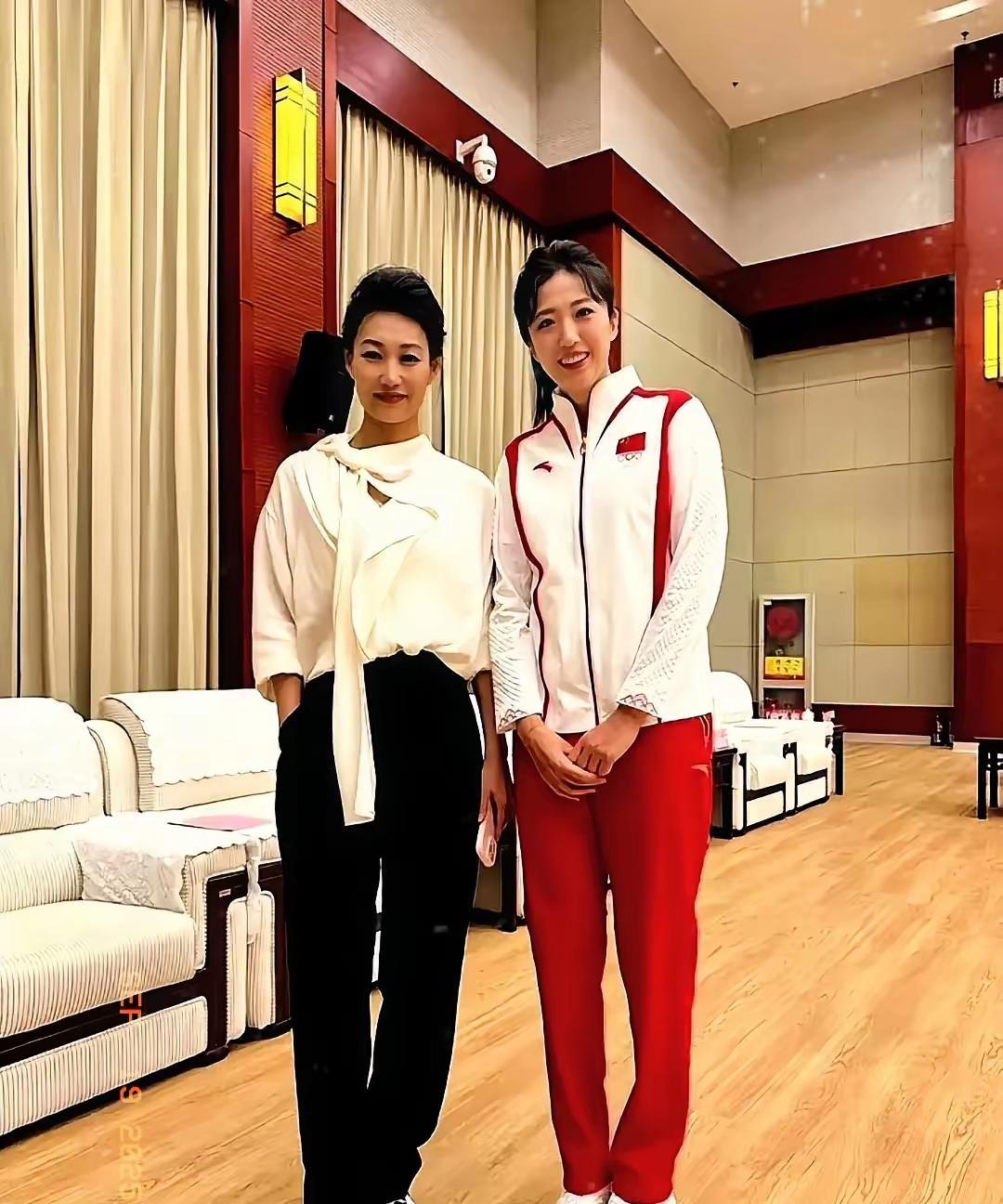 她俩站一块,被个头整懵了。是李梓萌个高,还是丁霞个矮?李梓萌身子是斜着的,丁霞几乎立着,她俩个头应该不分上下。李梓萌是央视著名播音主持人,看她经常出镜的身高,大多有1米70左右,丁霞是女排的运动健将,和女排的姐妹们站一起,她的身高至少也是1米80,可现在看起来,她俩竟不相上下。哈哈,视觉误差这么大吗?