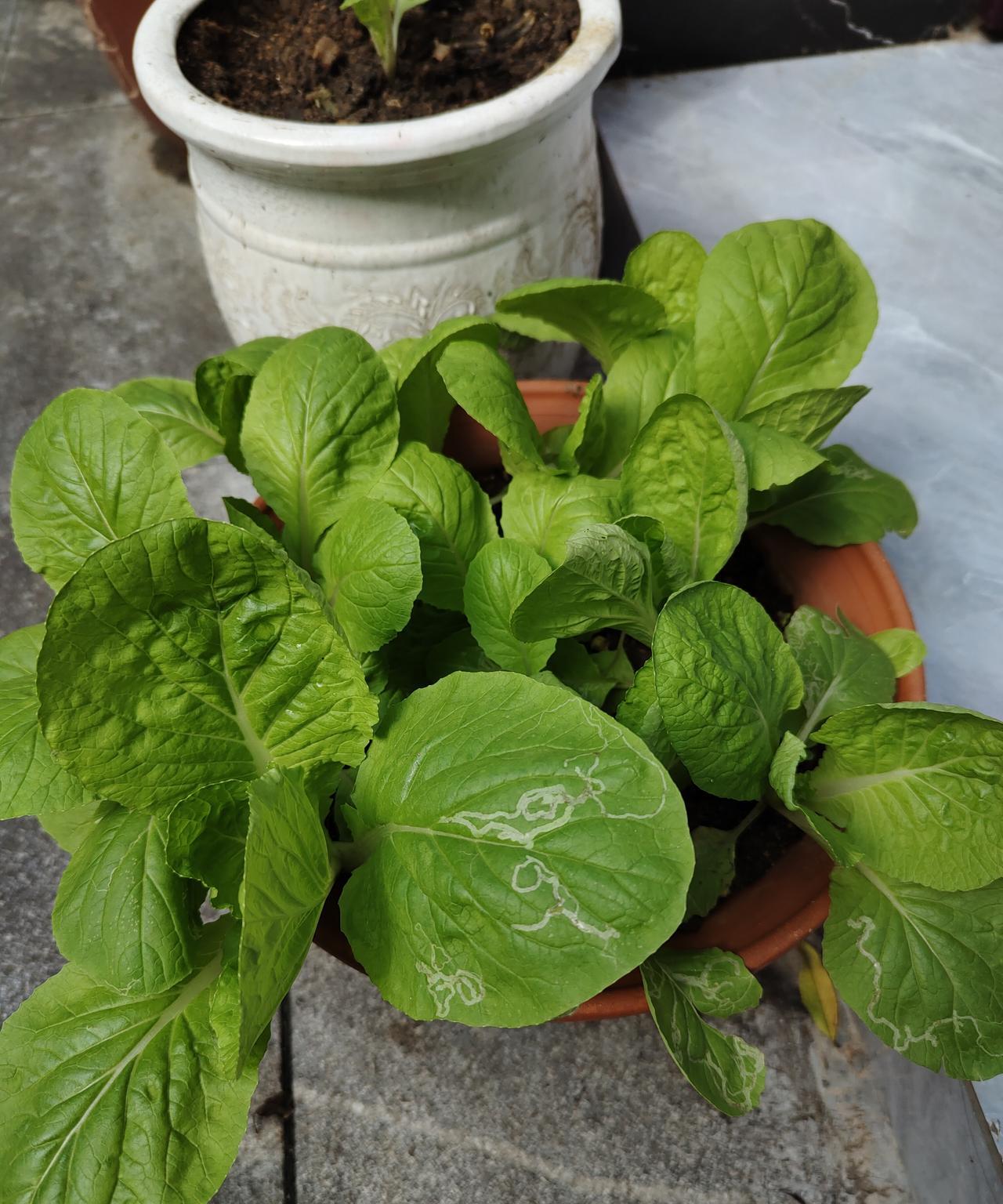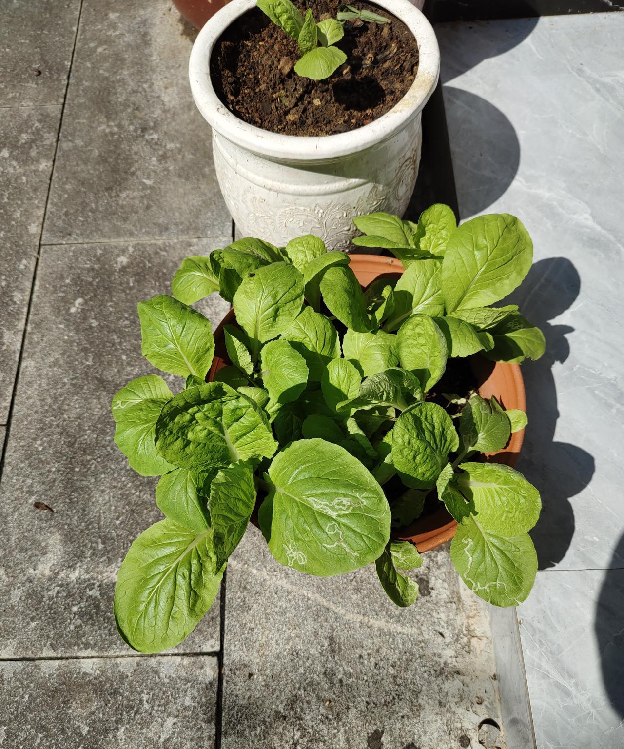 下了几天雨,我的小白菜喝足了水,长的水灵灵的,有几盆长的还挺好的,绿油油的能薅着吃了,做面条的时候放一颗小白菜,再卧个鸡蛋,香葱调味,应该很美味。 其实我也不理解为什么都是一起种的小白菜,有的长的好,有的长的孬呢?有的能吃了,有的还一点点大呢?难道跟花盆里的土有关? 其中一个花盆不知道咋回事,明明我也放肥料了,就是种啥都不长,前段时间种的辣椒也不行,别的盆子里辣椒结成串子,就这个盆子里自始至终就结了一个辣椒,一气之下,老早把辣椒薅了,白白浪费我好多水。 韭菜这几天糟了秧了,下雨下的叶子都沤烂了,每月一茬的包饺子计划也泡汤了。 南墙根种的菠菜,香菜刚刚冒出绿芽,不知谁家的小狗,天天钻里面拉屎,地里踩的坑坑洼洼的,菜苗都踩坏了,真把我气疯了,那天又看见一个小狗钻进去准备拉屎,我拿着铲子追了它半里路,狗吓的窜稀屎。这几天好了,没看见菜地里有狗屎,也许被我吓着了,不敢进去拉了。