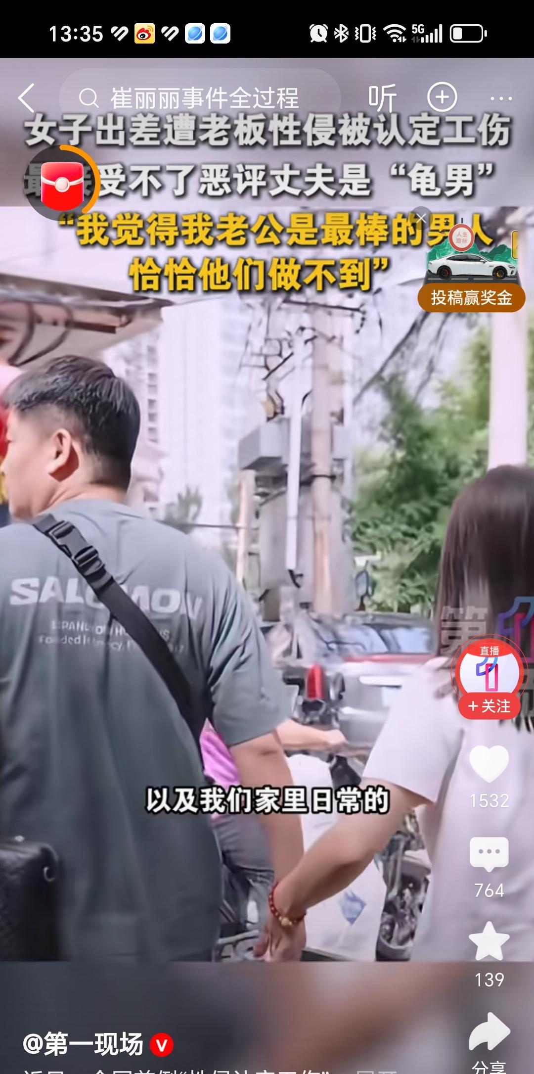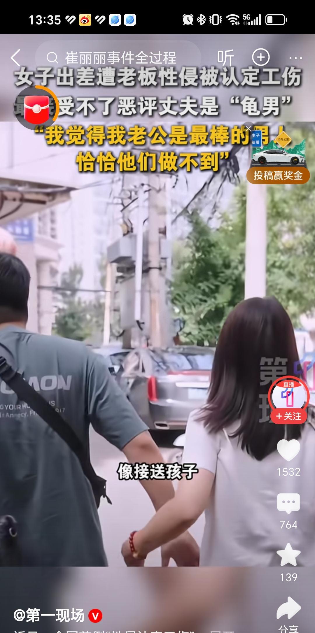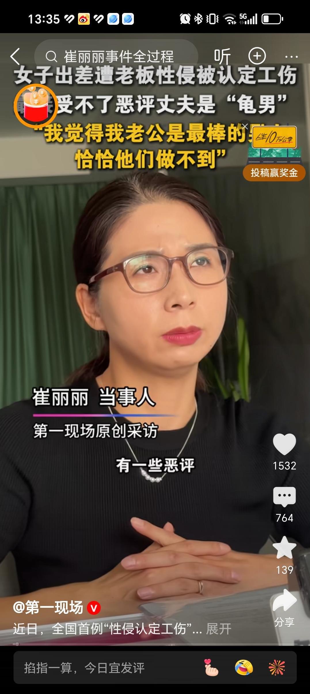 9月19日崔丽丽职场性侵案她老公承受的最多,崔丽丽面对这些恶评,心疼老公为她为家的付出。 只能说崔丽丽是个很传统的女人,被老板性侵之后工作和生活都不能进行了,连自己出门都困难。 有很多职场女性真的面对这样的事情也就当狗咬了一口,不会像他这样直接得病了,而且最后虽然获得工伤赔偿110万,但是是别人流言蜚语说他老公龟男,各种难听的话。我感觉是不是嫉妒人家有个好老公,很多男人养小三生私生子不恶心人吗?这样的好男人一直陪伴老婆取证,照顾家庭的好男人为什么不被理解还挨骂。 只能说有好女人尊重家庭,也有好男人爱老婆和孩子。也有坏女人和谁都一样睡不在乎,也有坏男人看谁都想占便宜。这个世界人多了什么样都有。 但是在老婆遇到困难不离不弃的男人最帅,最好,我挺崔丽丽老公。